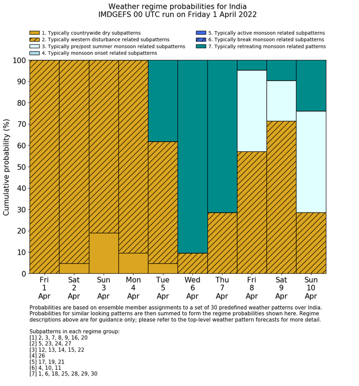 | Weather patterns typically associated with pre-monsoon tendencies over India are most likely Weather patterns 12, 13, 14, 15 and 22 (pre-monsoon) | |
