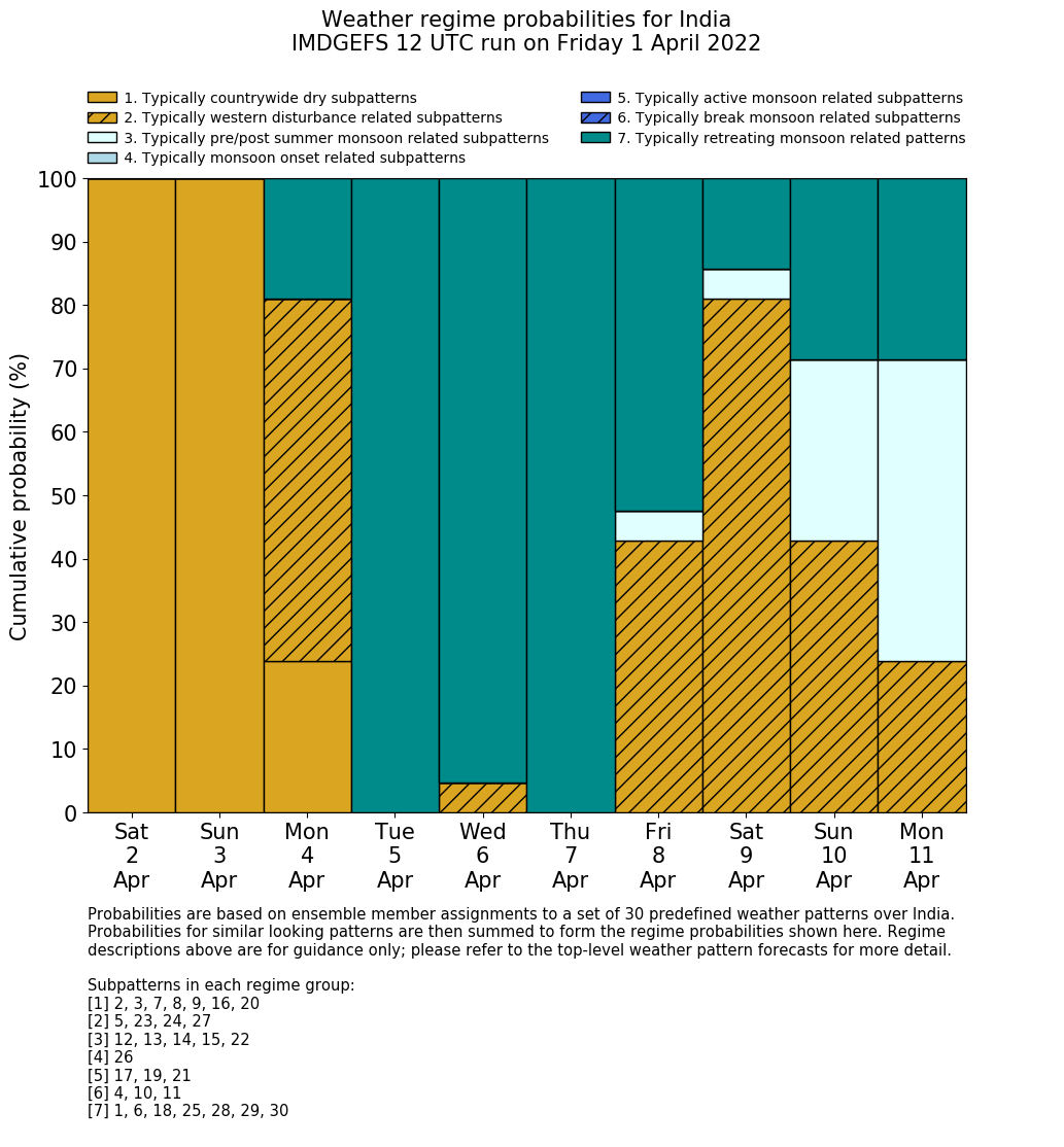 | Weather patterns typically associated with pre-monsoon tendencies over India are most likely Weather patterns 12, 13, 14, 15 and 22 (pre-monsoon) | |