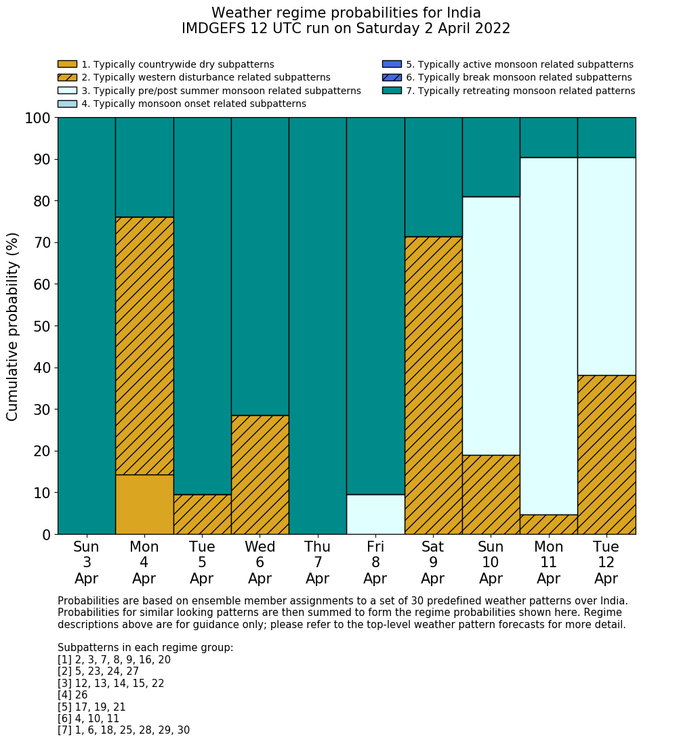 | Weather patterns typically associated with pre-monsoon tendencies over India are most likely Weather patterns 12, 13, 14, 15 and 22 (pre-monsoon) | |