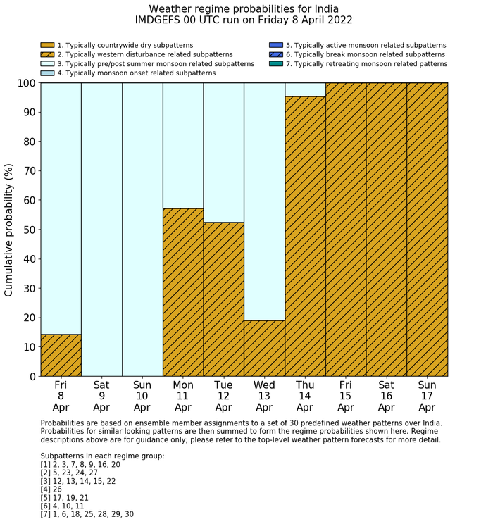 | Weather patterns typically associated with pre-monsoon tendencies over India are most likely Weather patterns 12, 13, 14, 15 and 22 (pre-monsoon) | |
