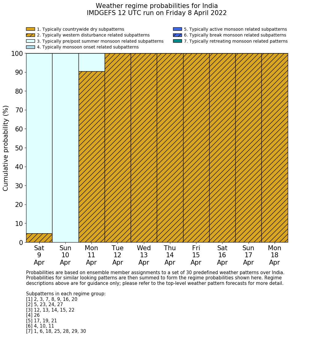 | Weather patterns typically associated with pre-monsoon tendencies over India are most likely Weather patterns 12, 13, 14, 15 and 22 (pre-monsoon) | |