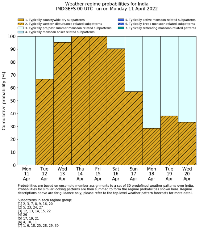 | Weather patterns typically associated with pre-monsoon tendencies over India are most likely Weather patterns 12, 13, 14, 15 and 22 (pre-monsoon) | |