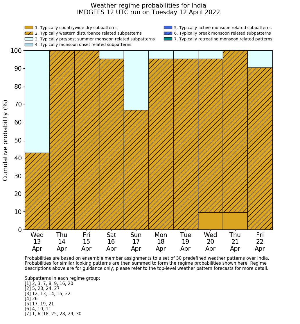 | Weather patterns typically associated with pre-monsoon tendencies over India are most likely Weather patterns 12, 13, 14, 15 and 22 (pre-monsoon) | |