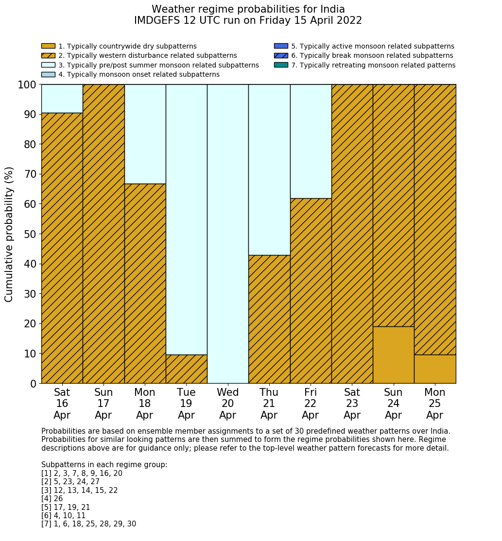 | Weather patterns typically associated with pre-monsoon tendencies over India are most likely Weather patterns 12, 13, 14, 15 and 22 (pre-monsoon) | |