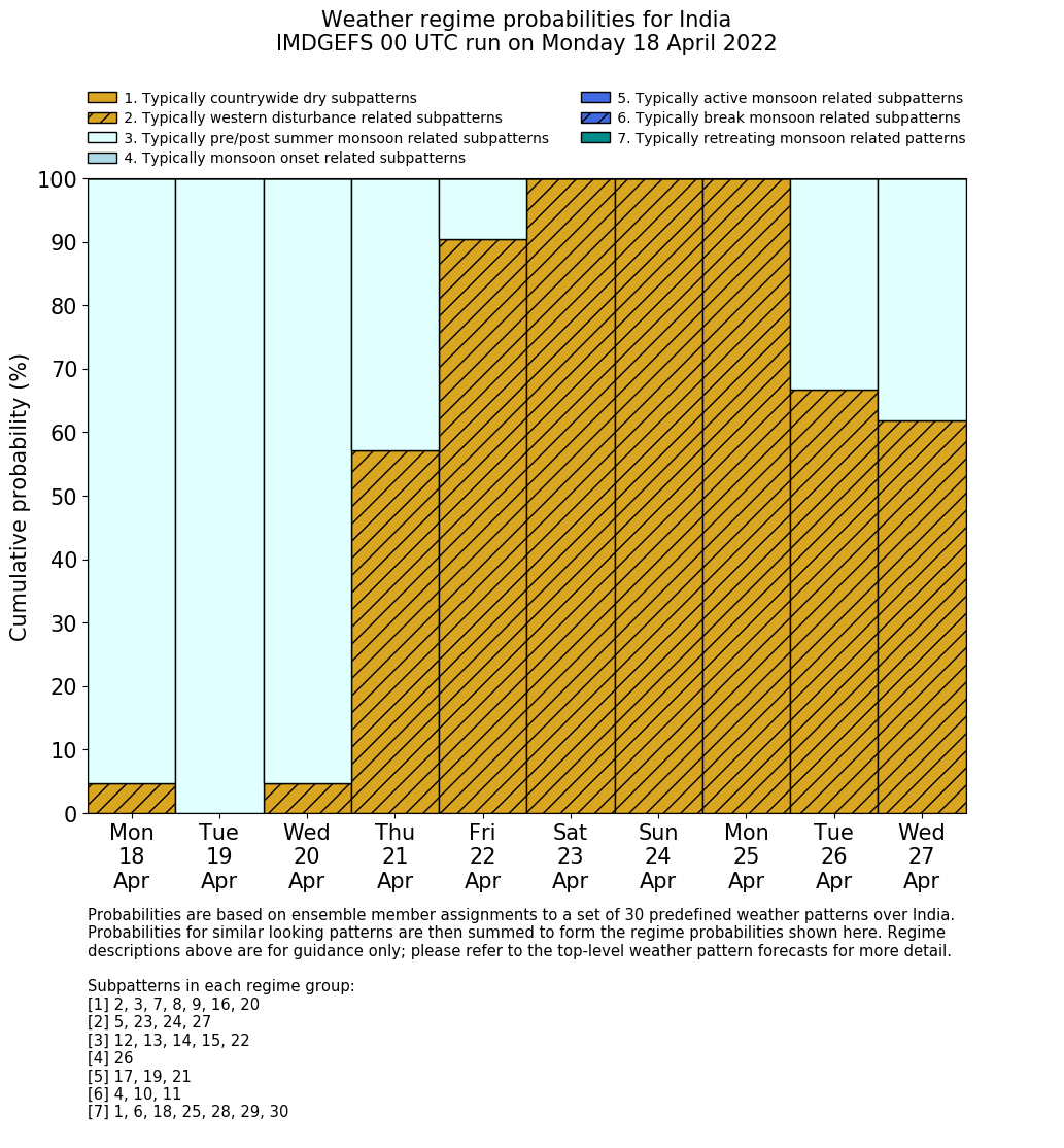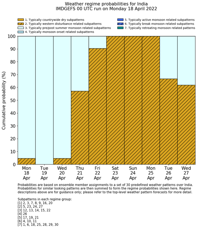 | Weather patterns typically associated with pre-monsoon tendencies over India are most likely Weather patterns 12, 13, 14, 15 and 22 (pre-monsoon) | |