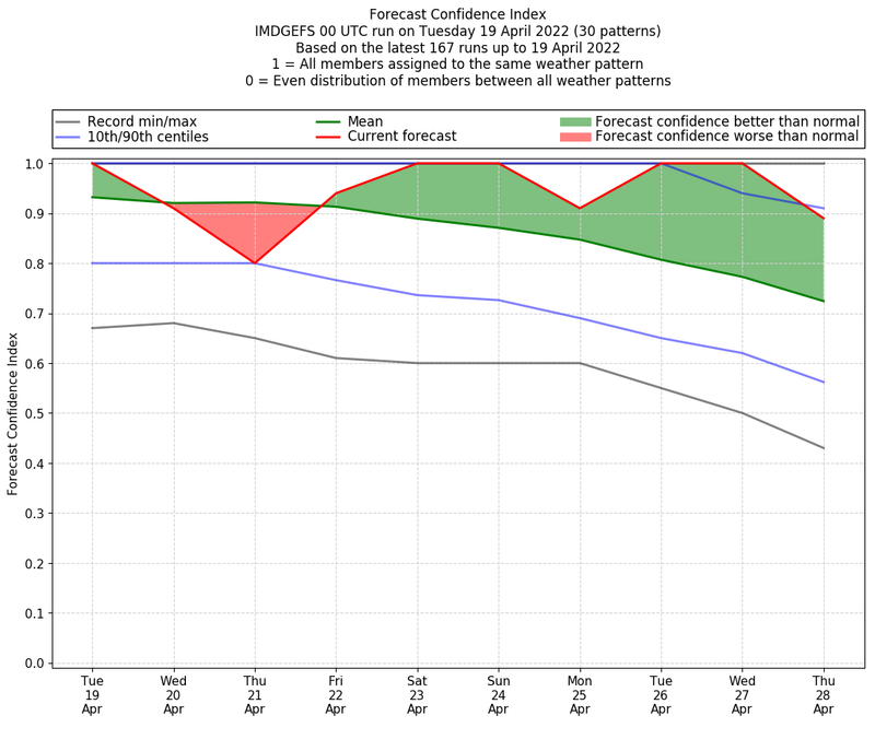 | Latest model run (19/00 UTC) | 100% | 90% | 57% | 95% | 100% | 100% | 100% | 100% | 100% | 95% |