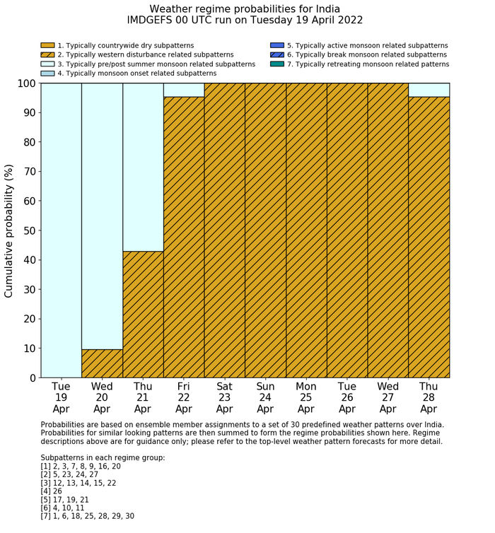 | Weather patterns typically associated with pre-monsoon tendencies over India are most likely Weather patterns 12, 13, 14, 15 and 22 (pre-monsoon) | |