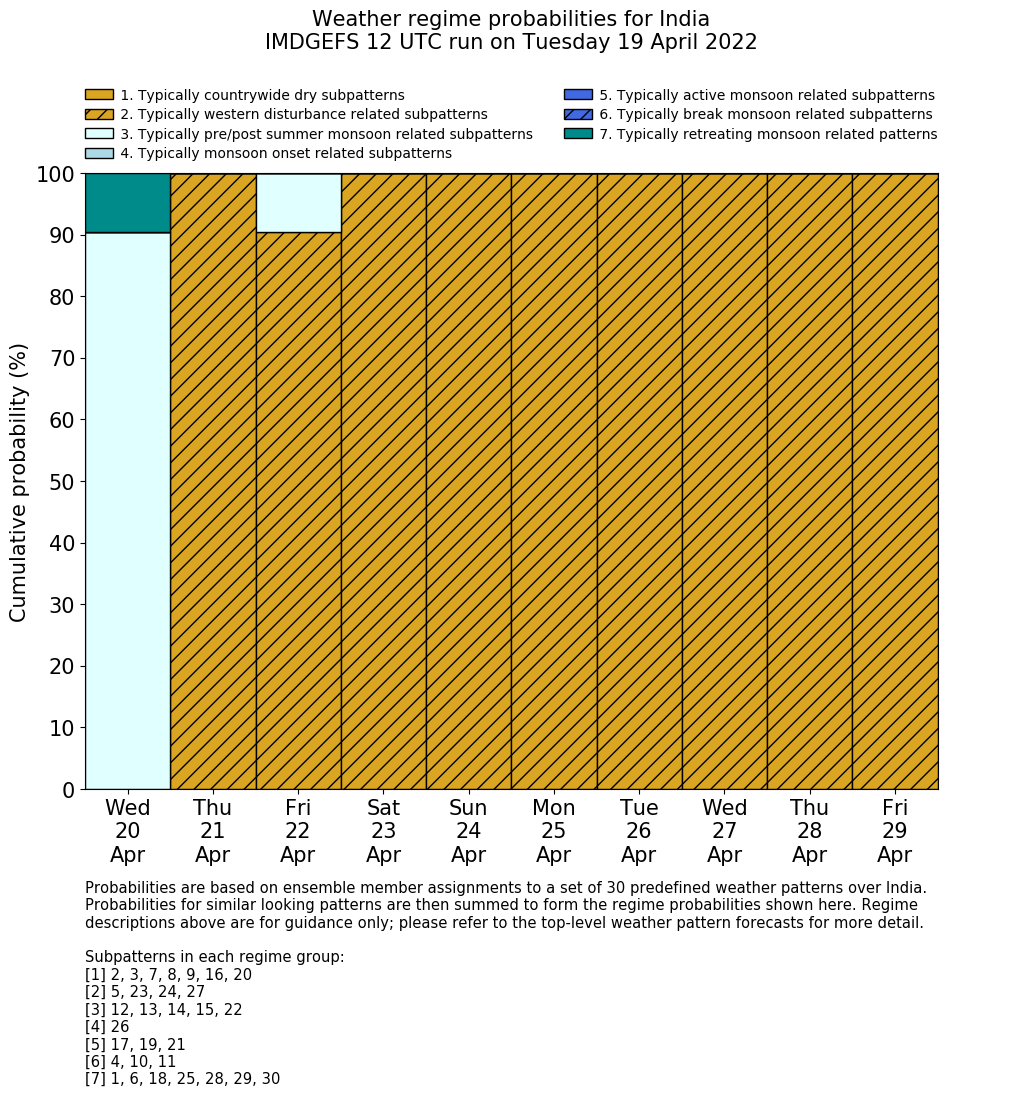 | Weather patterns typically associated with pre-monsoon tendencies over India are most likely Weather patterns 12, 13, 14, 15 and 22 (pre-monsoon) | |