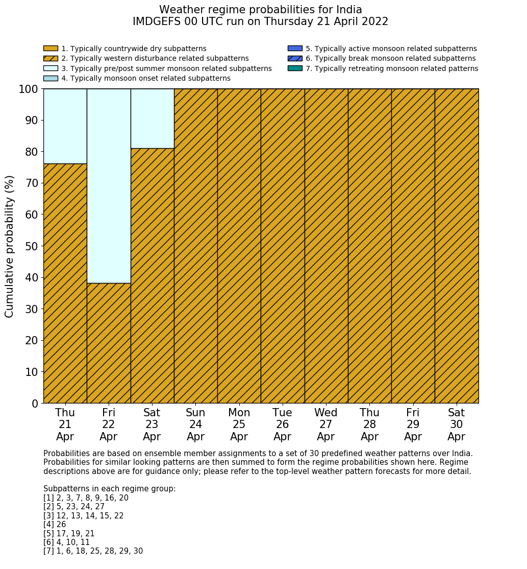 | Weather patterns typically associated with pre-monsoon tendencies over India are most likely Weather patterns 12, 13, 14, 15 and 22 (pre-monsoon) | |
