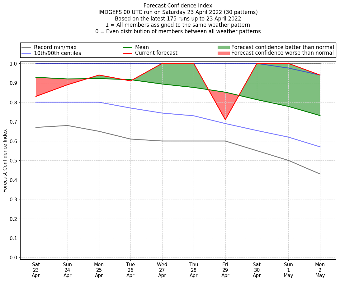 | Latest model run (23/00 UTC) | 81% | 90% | 95% | 90% | 100% | 100% | 67% | 100% | 100% | 95% |