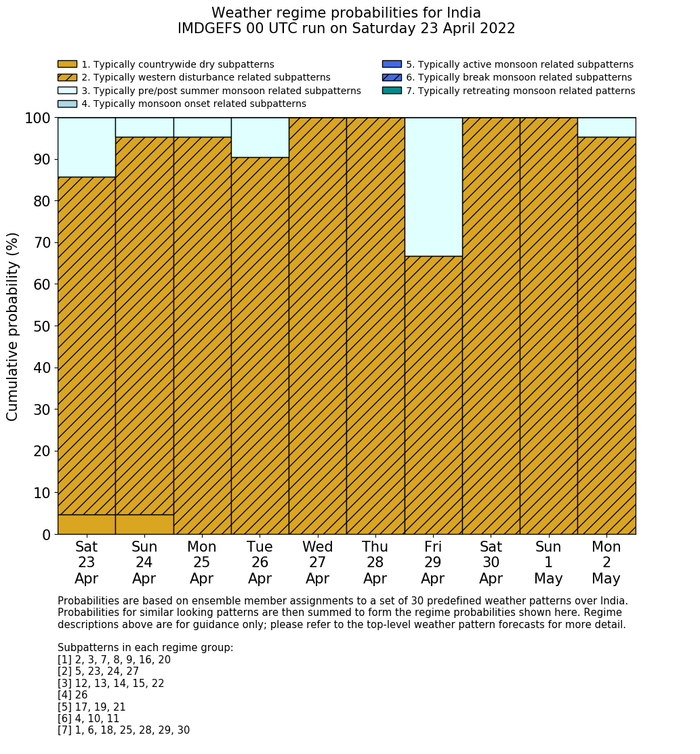 | Weather patterns typically associated with pre-monsoon tendencies over India are most likely Weather patterns 12, 13, 14, 15 and 22 (pre-monsoon) | |