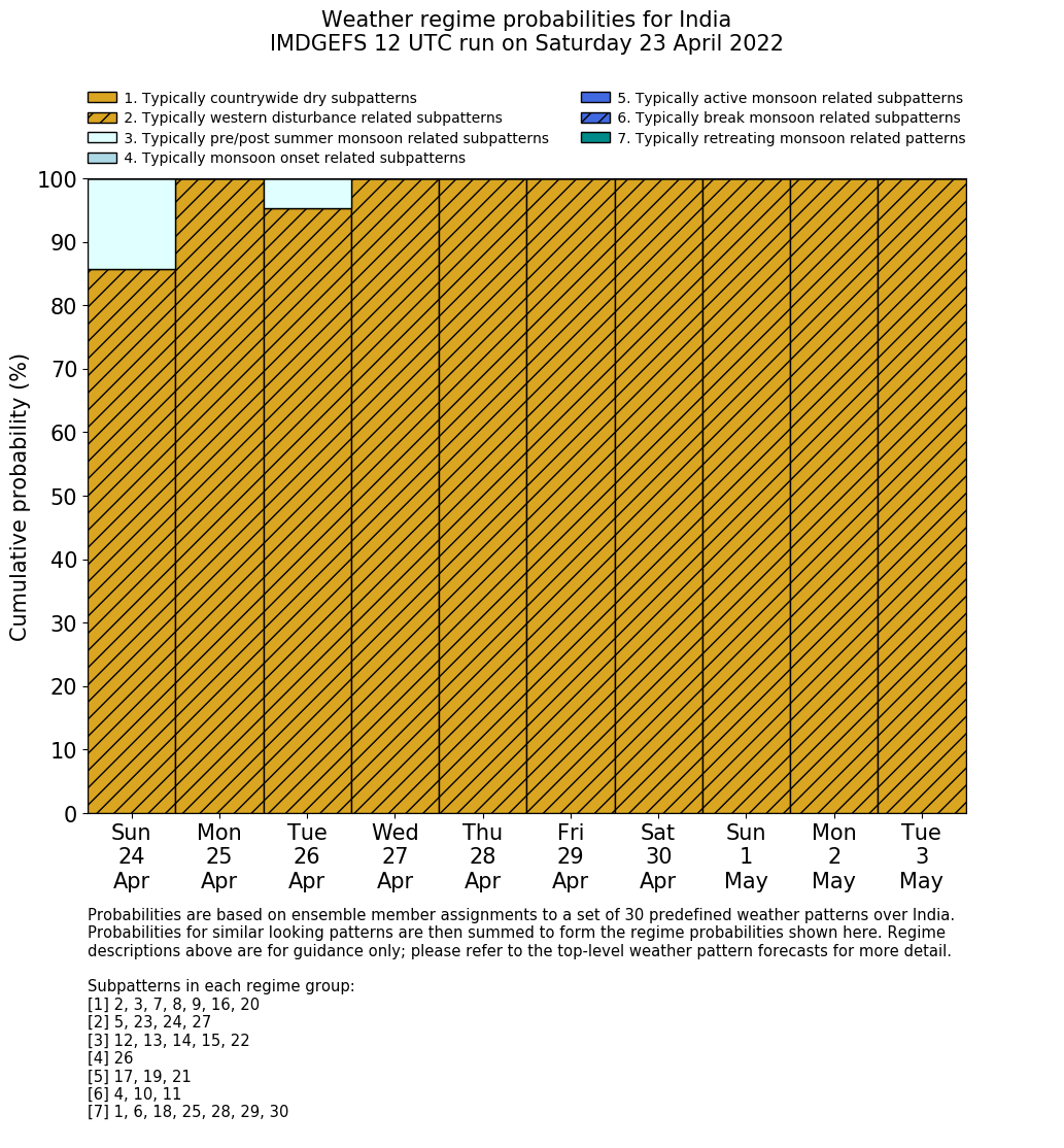 | Weather patterns typically associated with pre-monsoon tendencies over India are most likely Weather patterns 12, 13, 14, 15 and 22 (pre-monsoon) | |