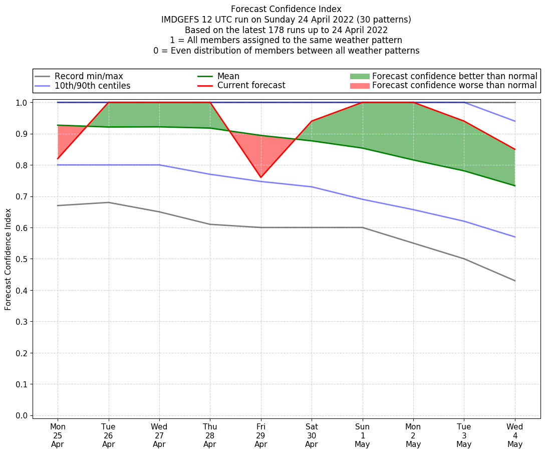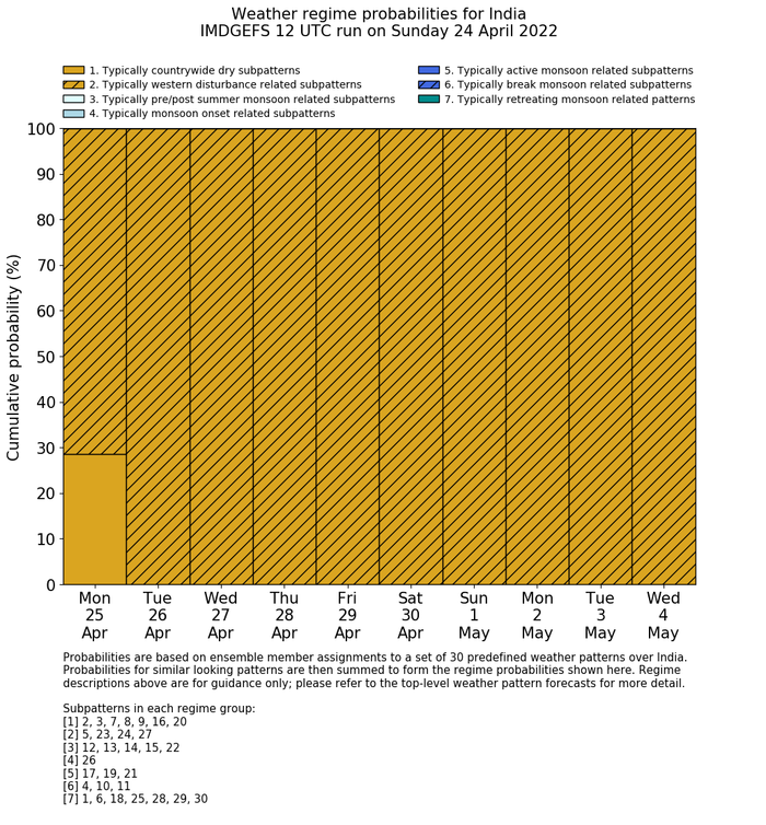 | Weather patterns typically associated with pre-monsoon tendencies over India are most likely Weather patterns 12, 13, 14, 15 and 22 (pre-monsoon) | |
