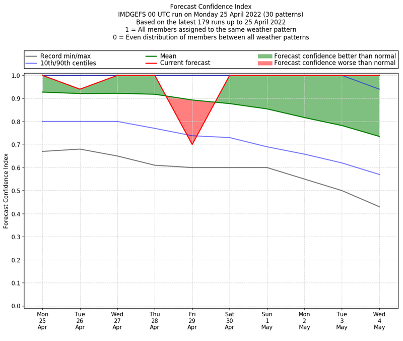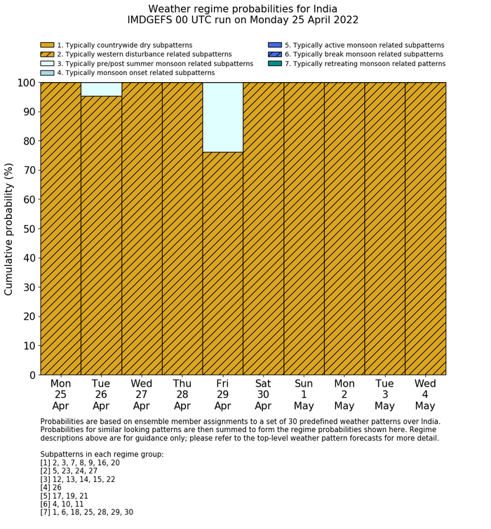 | Weather patterns typically associated with pre-monsoon tendencies over India are most likely Weather patterns 12, 13, 14, 15 and 22 (pre-monsoon) | |