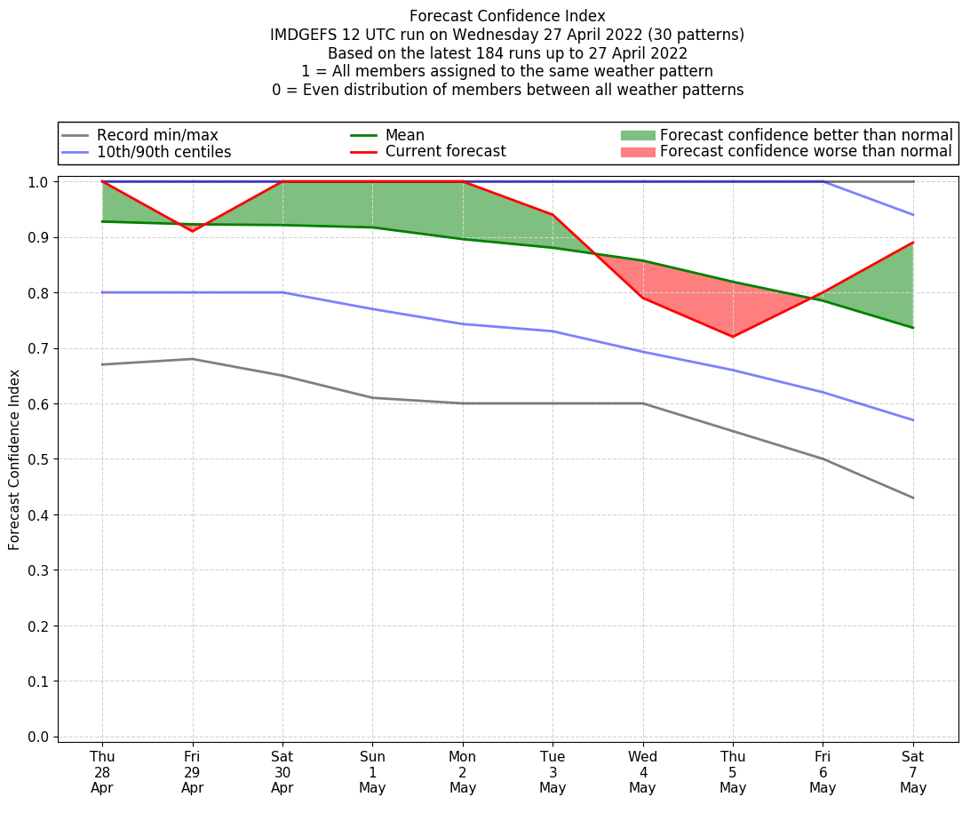 | Latest model run (27/12 UTC) | 100% | 100% | 100% | 100% | 100% | 95% | 76% | 90% | 90% | 90% |