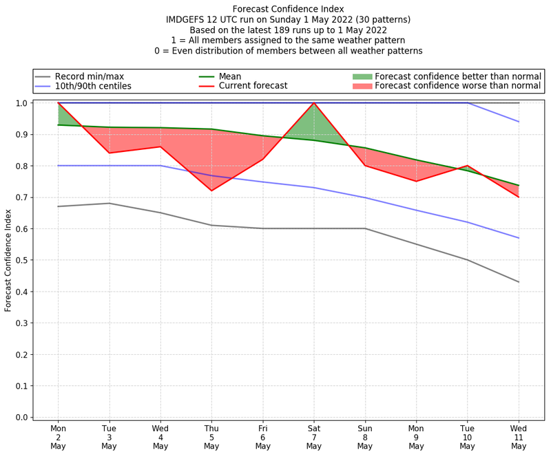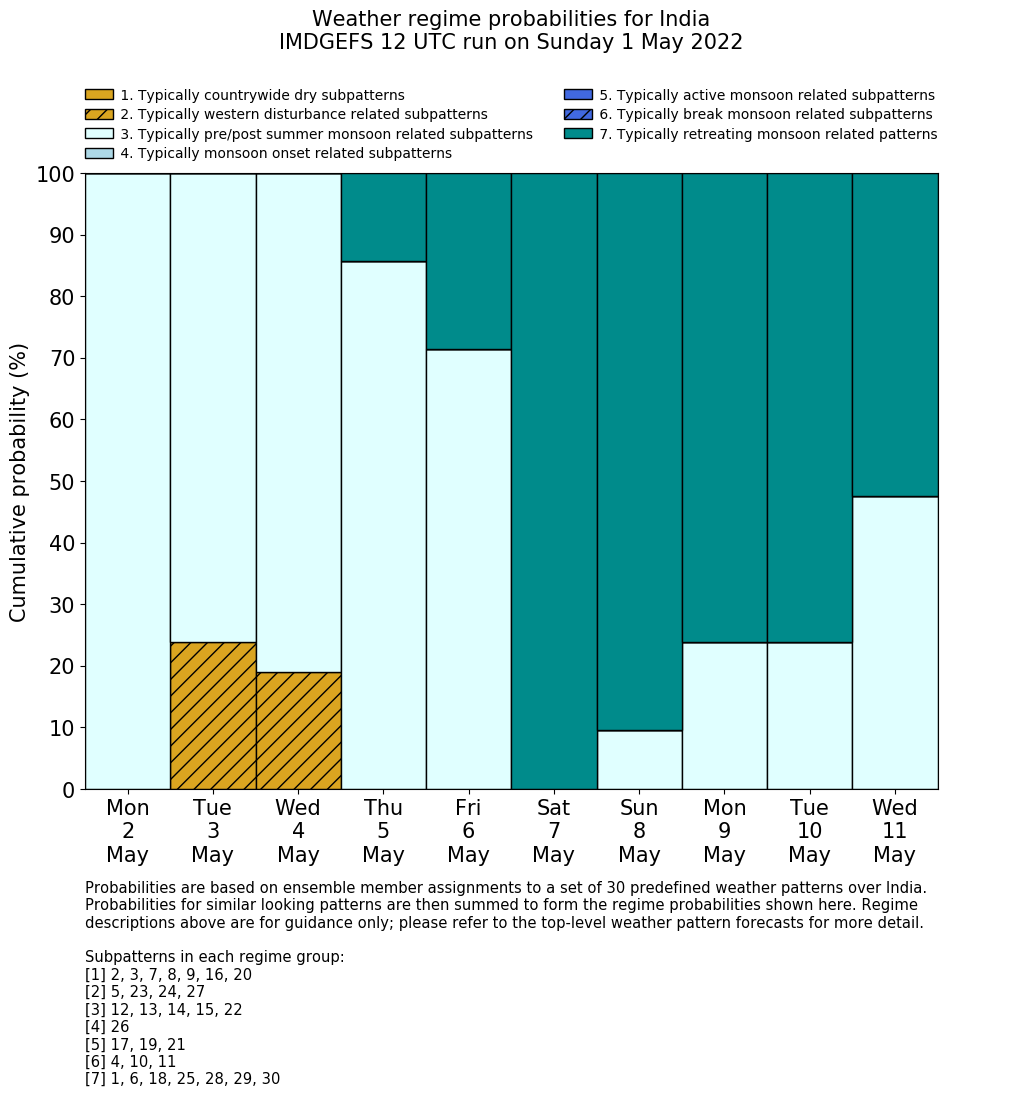 | Weather patterns typically associated with pre-monsoon tendencies over India are most likely Weather patterns 12, 13, 14, 15 and 22 (pre-monsoon) | |