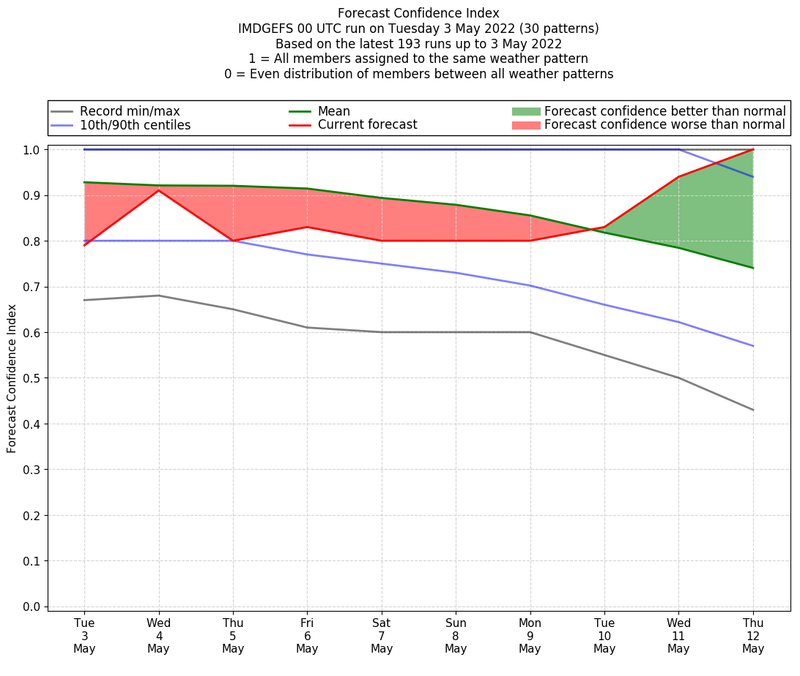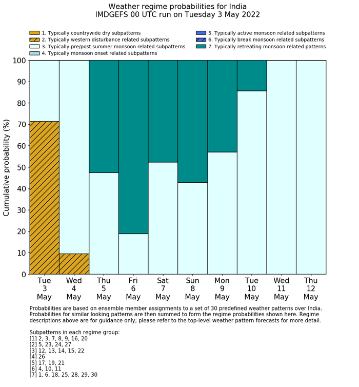 | Weather patterns typically associated with pre-monsoon tendencies over India are most likely Weather patterns 12, 13, 14, 15 and 22 (pre-monsoon) | |