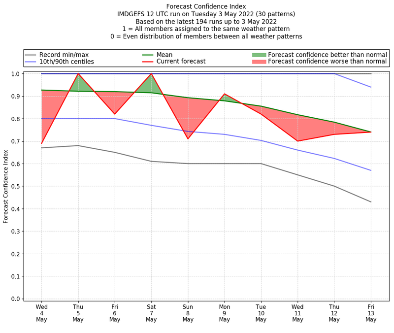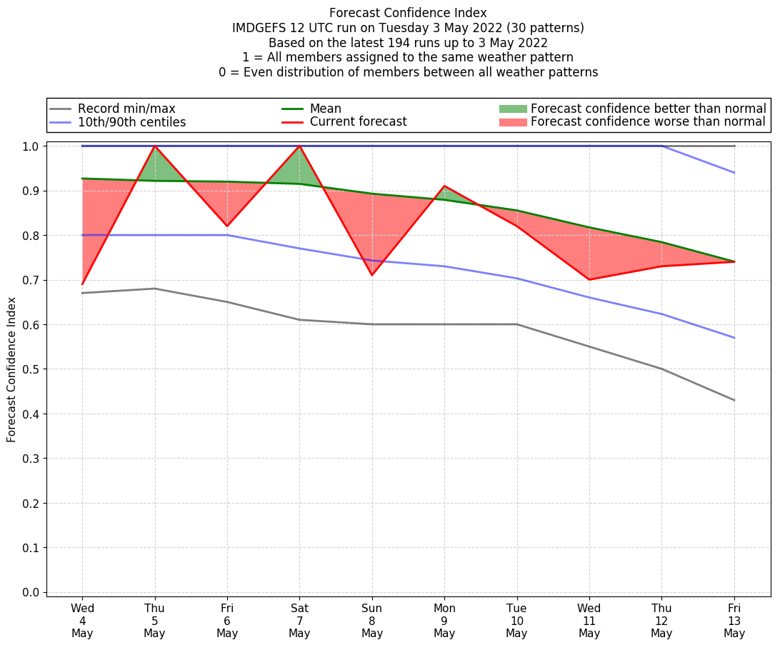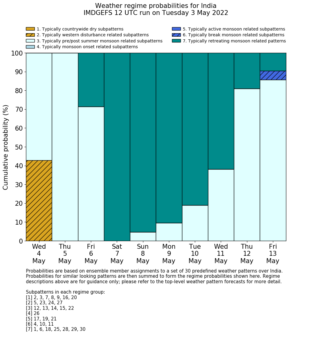 | Weather patterns typically associated with pre-monsoon tendencies over India are most likely Weather patterns 12, 13, 14, 15 and 22 (pre-monsoon) | |