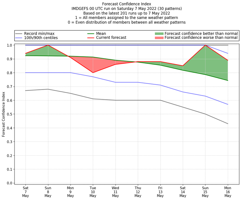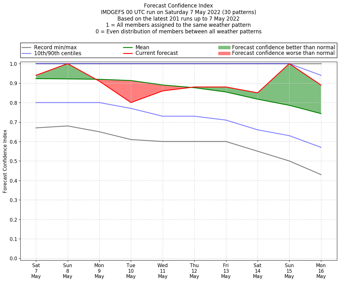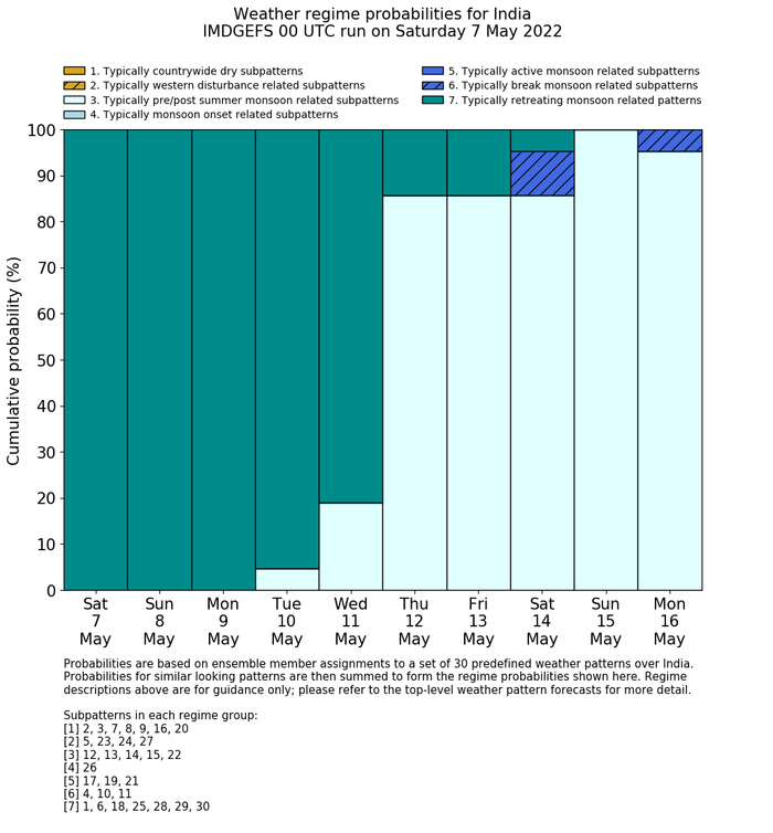 | Weather patterns typically associated with pre-monsoon tendencies over India are most likely Weather patterns 12, 13, 14, 15 and 22 (pre-monsoon) | |