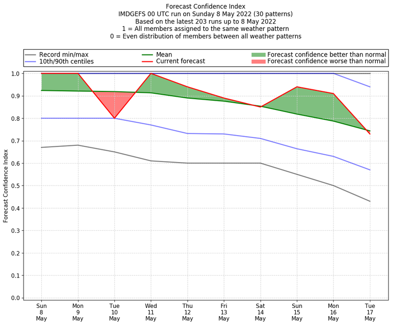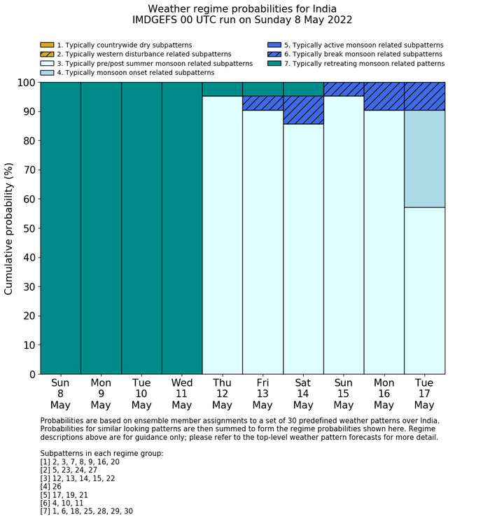 | Weather patterns typically associated with pre-monsoon tendencies over India are most likely Weather patterns 12, 13, 14, 15 and 22 (pre-monsoon) | |