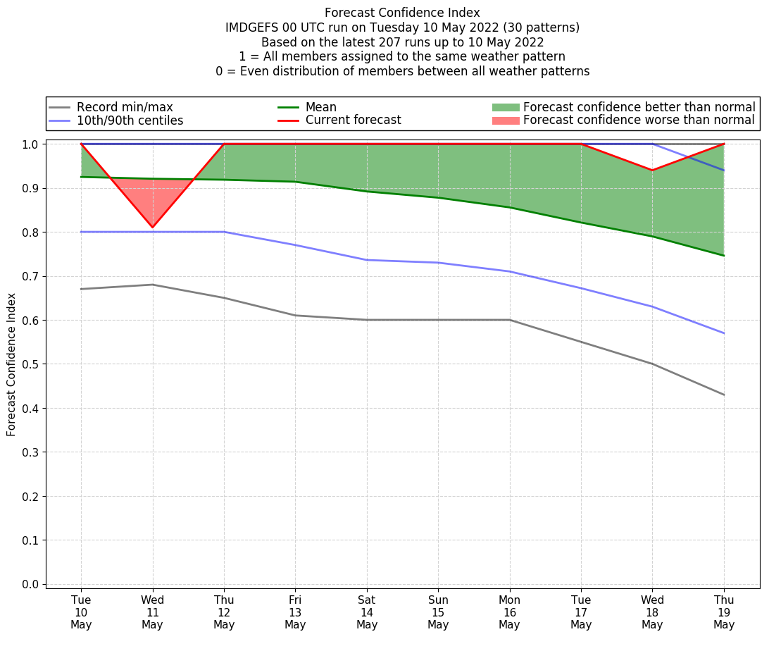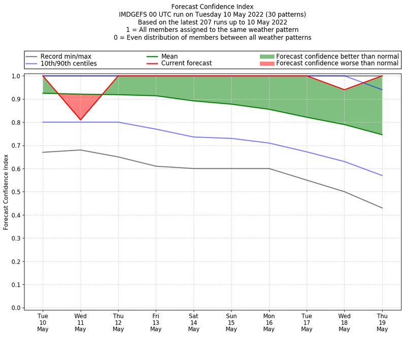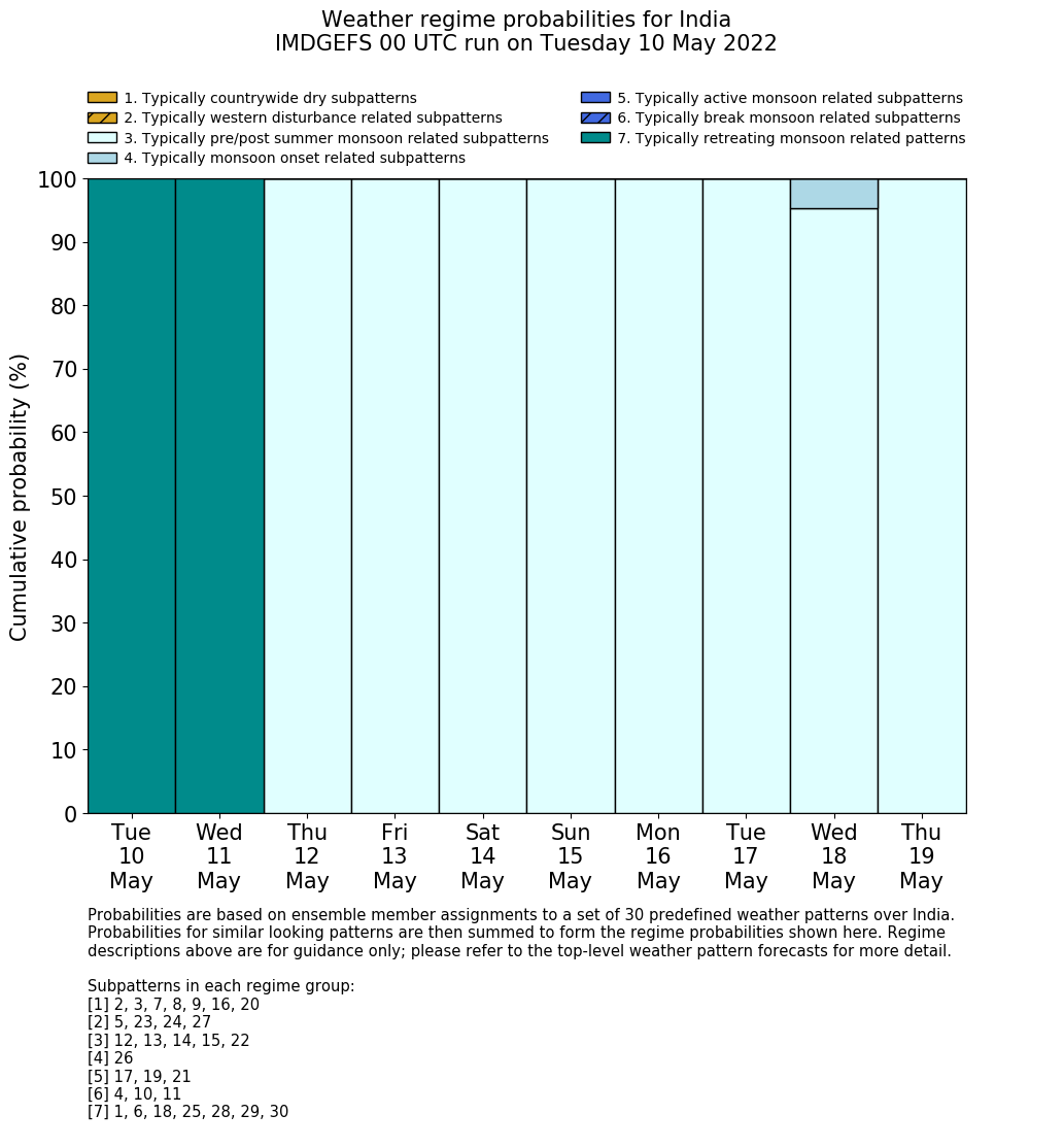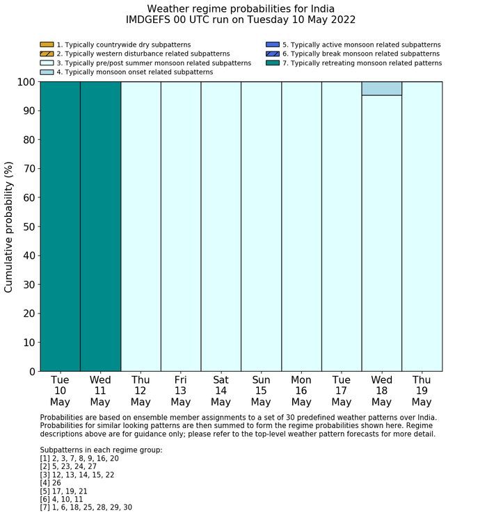| Weather patterns typically associated with pre-monsoon tendencies over India are most likely Weather patterns 12, 13, 14, 15 and 22 (pre-monsoon) | |