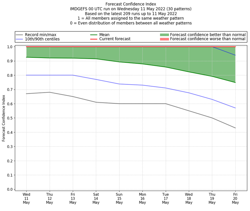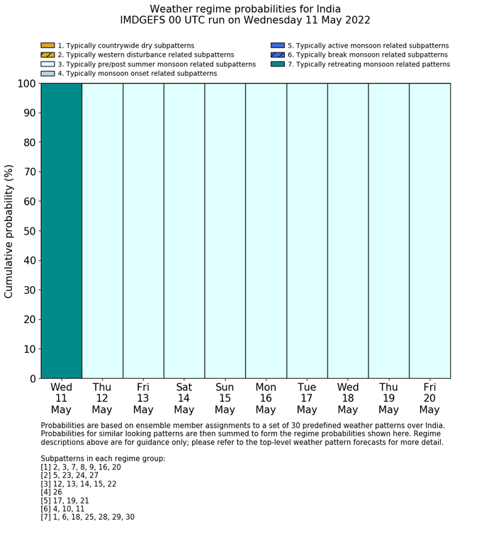 | Weather patterns typically associated with pre-monsoon tendencies over India are most likely Weather patterns 12, 13, 14, 15 and 22 (pre-monsoon) | |