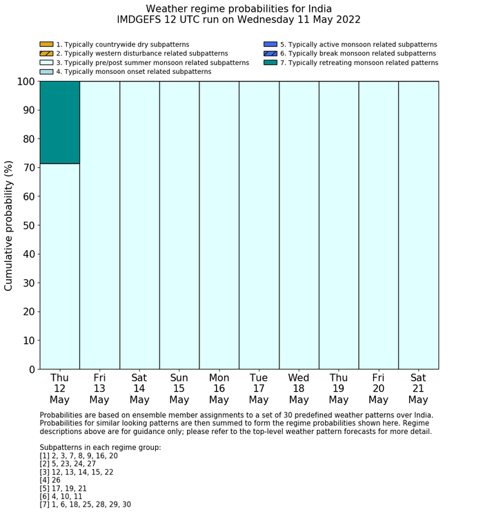 | Weather patterns typically associated with pre-monsoon tendencies over India are most likely Weather patterns 12, 13, 14, 15 and 22 (pre-monsoon) | |