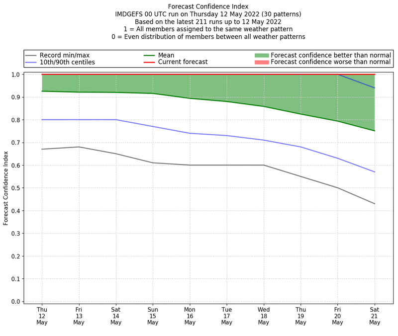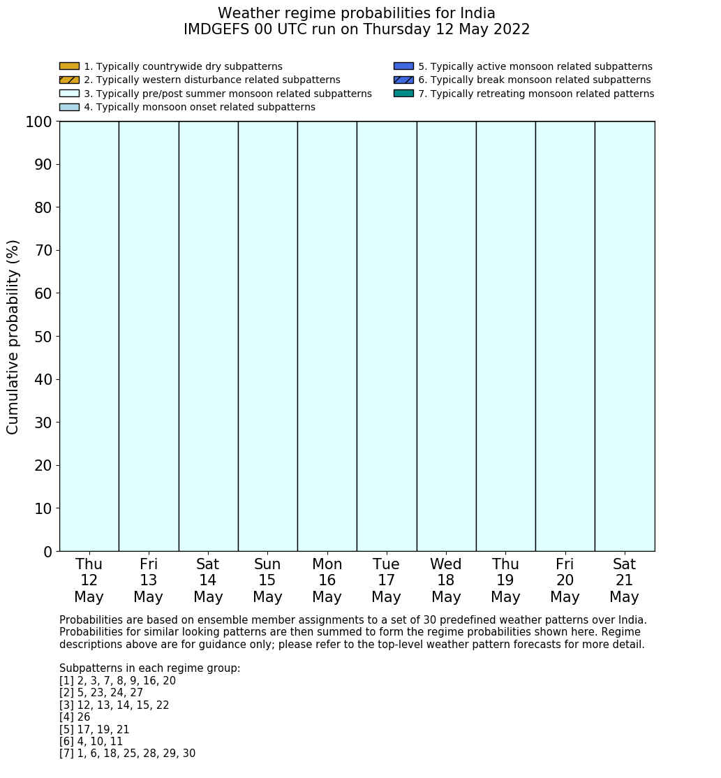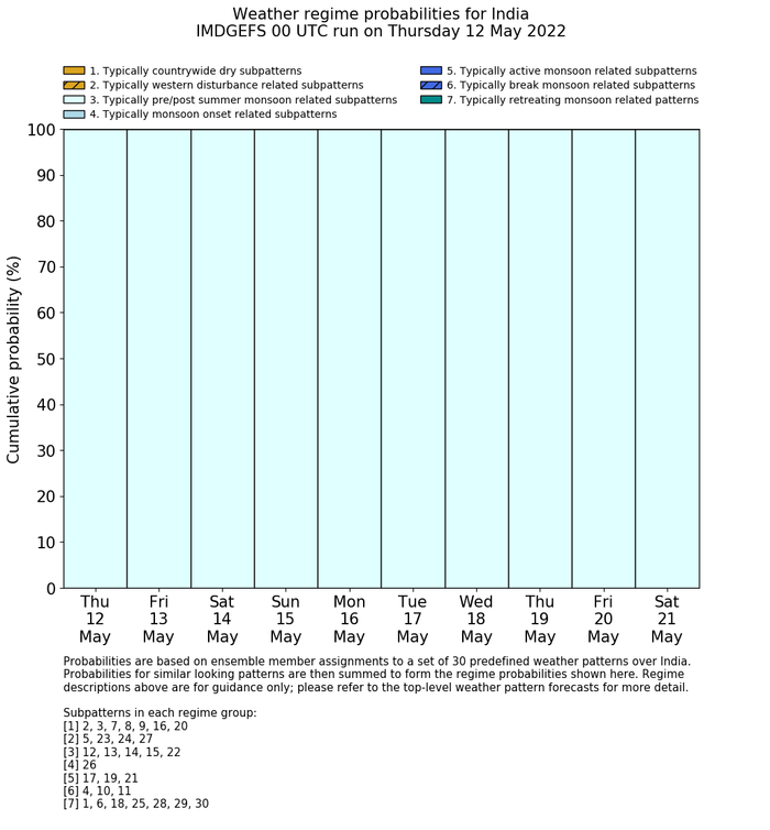 | Weather patterns typically associated with pre-monsoon tendencies over India are most likely Weather patterns 12, 13, 14, 15 and 22 (pre-monsoon) | |