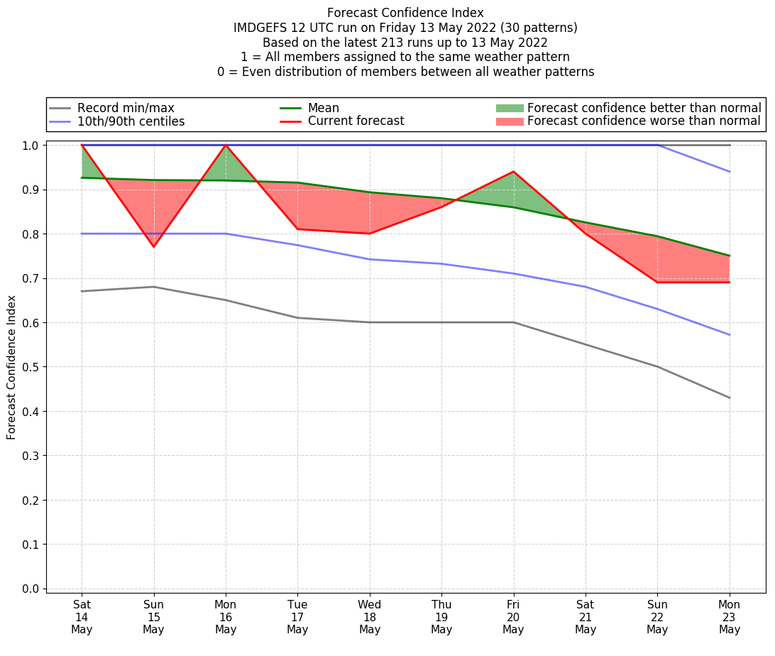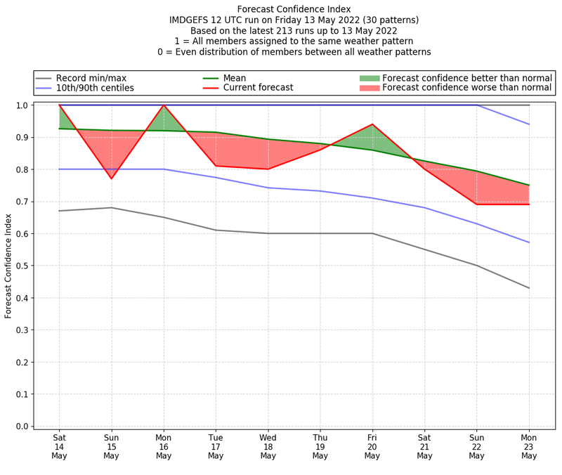 | Latest model run (13/12 UTC) | 100% | 95% | 100% | 100% | 100% | 81% | 100% | 100% | 81% | 71% |