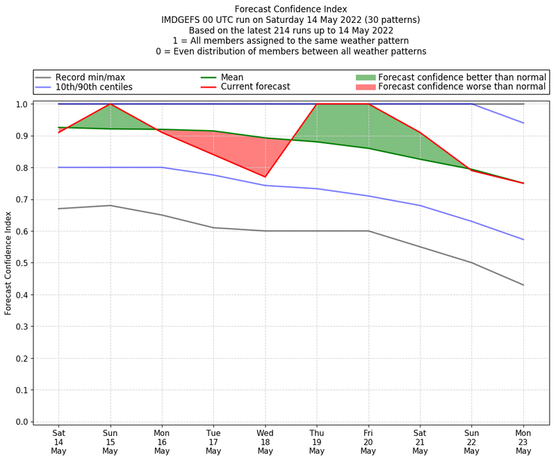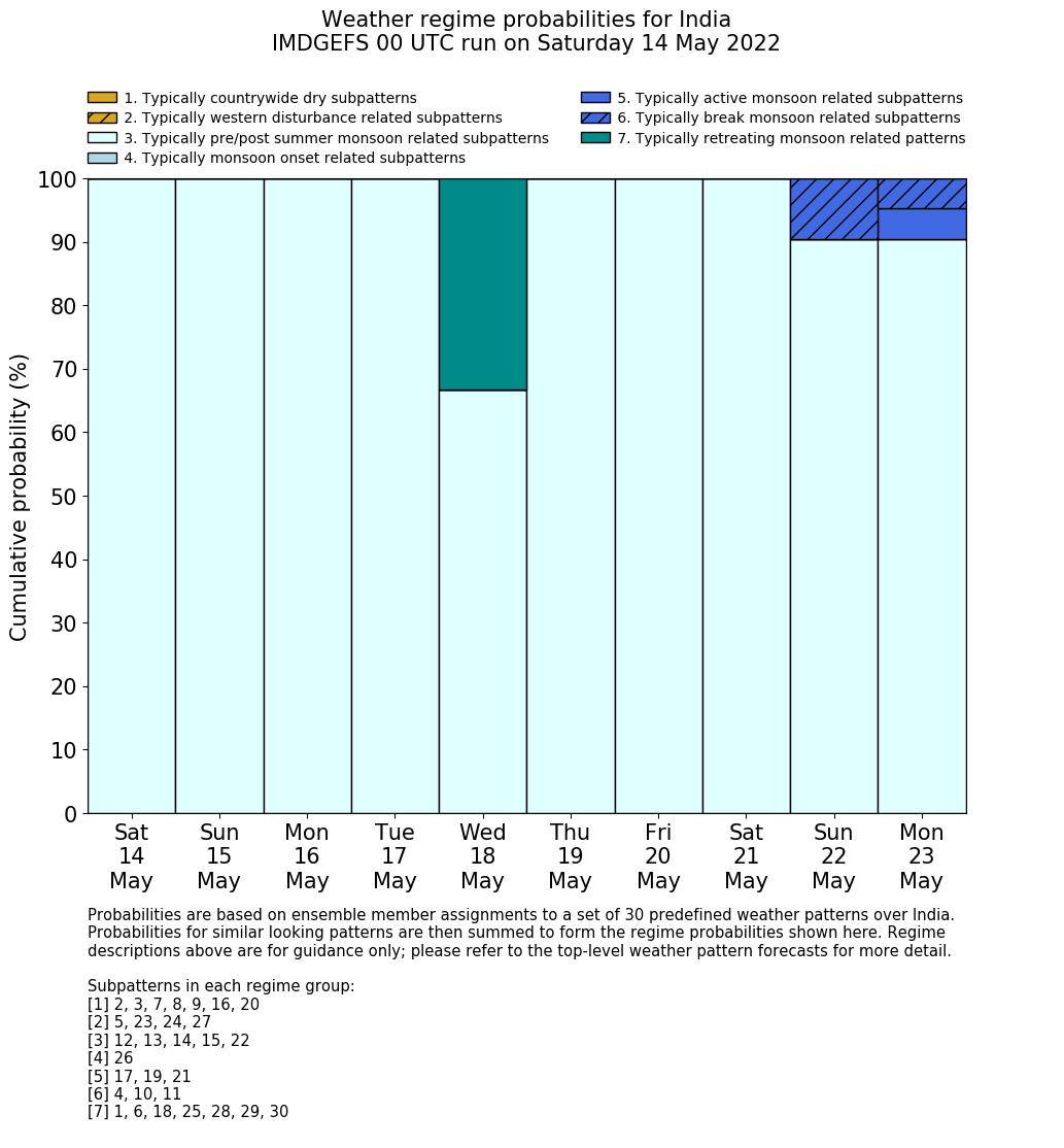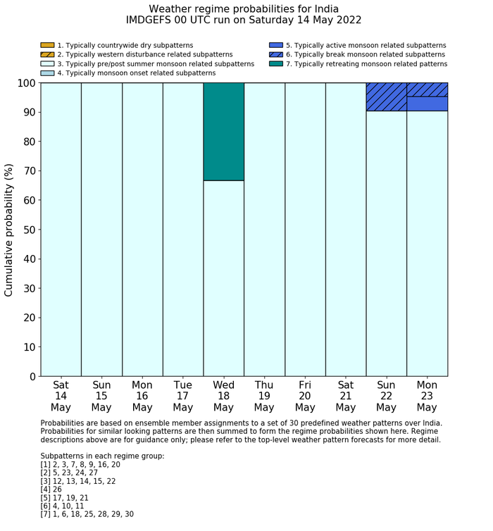 | Weather patterns typically associated with pre-monsoon tendencies over India are most likely Weather patterns 12, 13, 14, 15 and 22 (pre-monsoon) | |