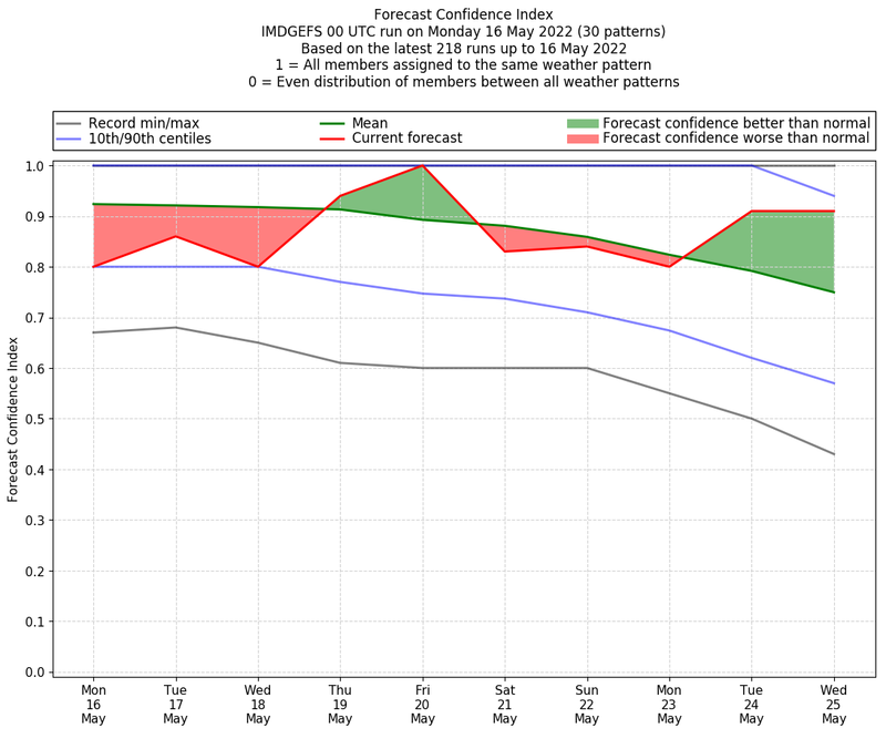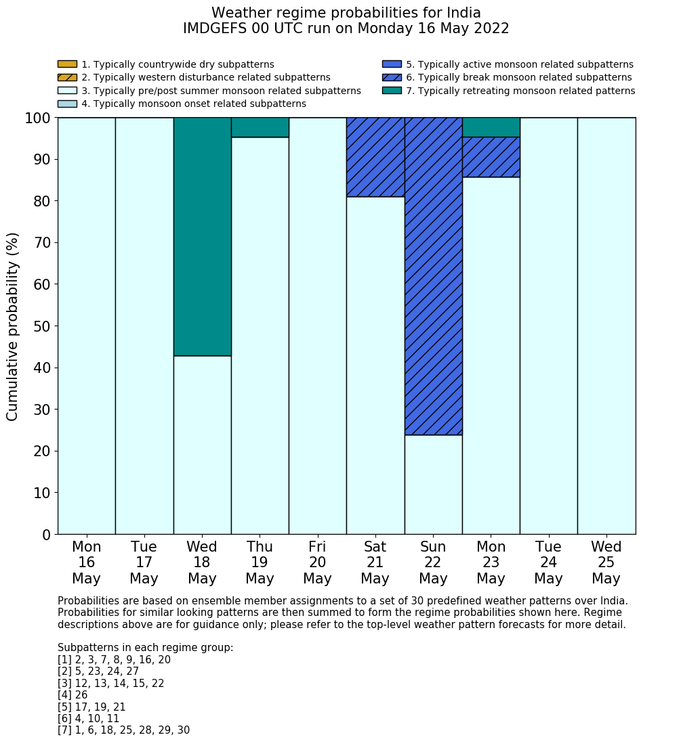 | Weather patterns typically associated with pre-monsoon tendencies over India are most likely Weather patterns 12, 13, 14, 15 and 22 (pre-monsoon) | |
