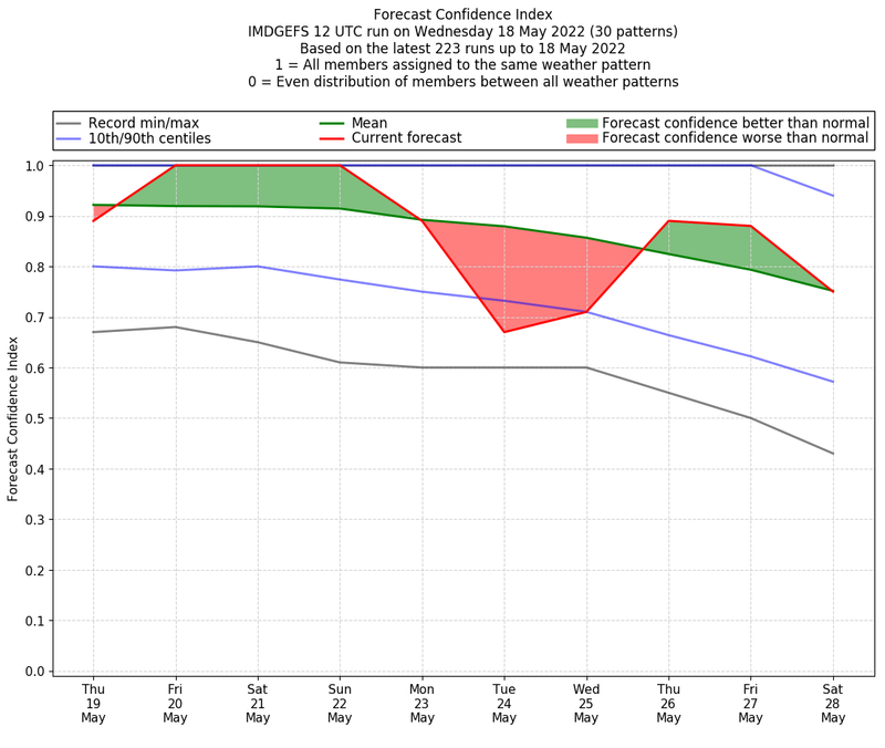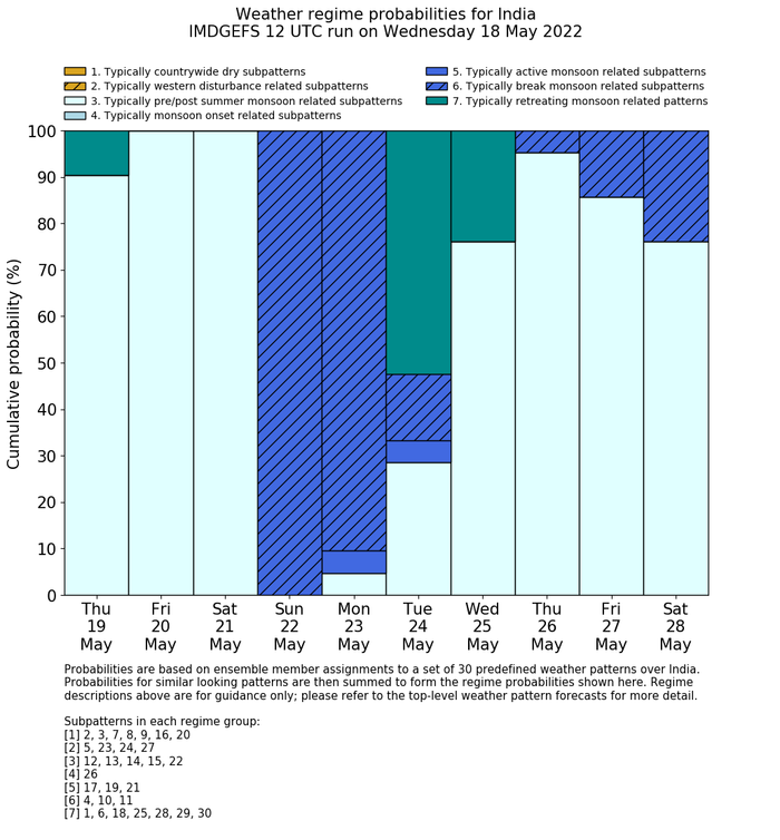 | Weather patterns typically associated with pre-monsoon tendencies over India are most likely Weather patterns 12, 13, 14, 15 and 22 (pre-monsoon) | |