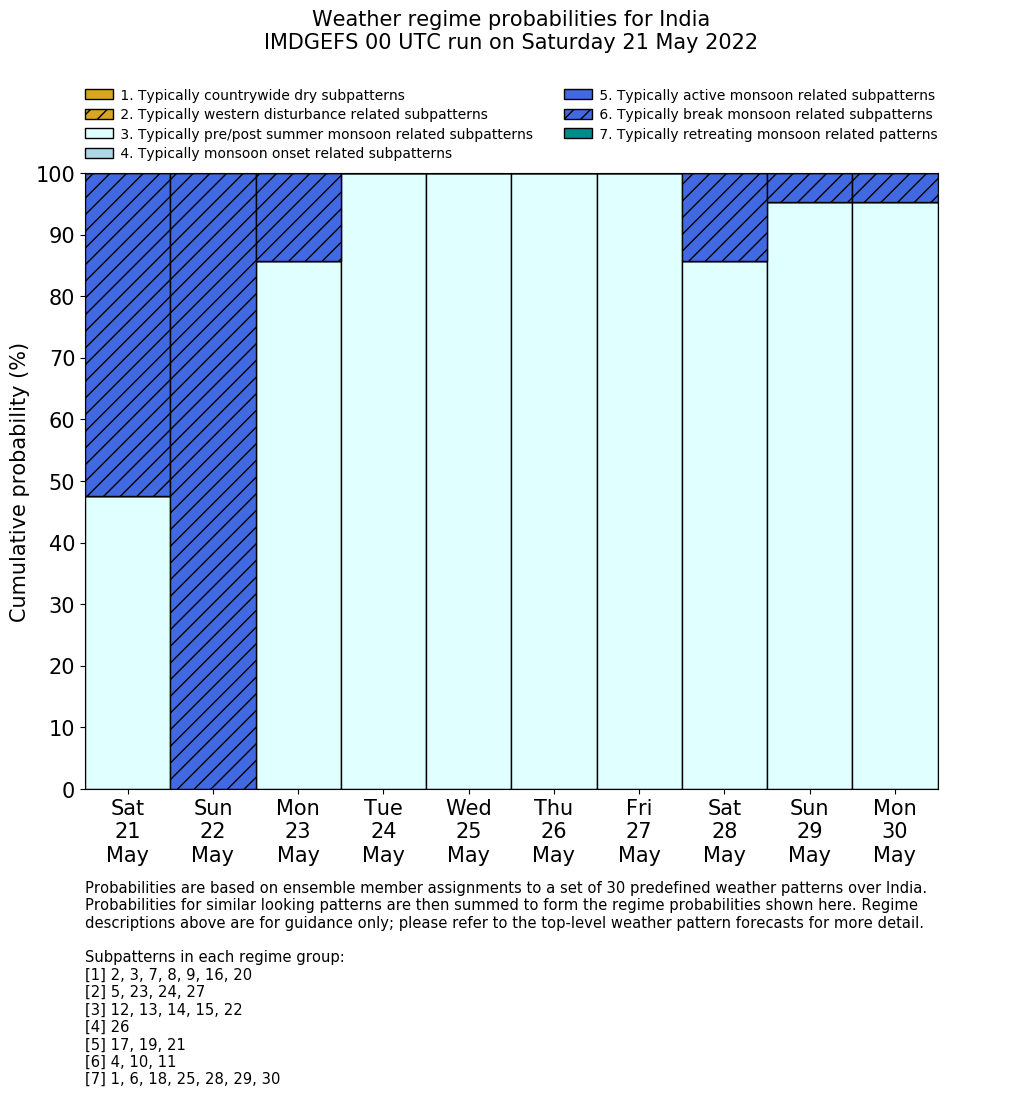 | Weather patterns typically associated with pre-monsoon tendencies over India are most likely Weather patterns 12, 13, 14, 15 and 22 (pre-monsoon) | |