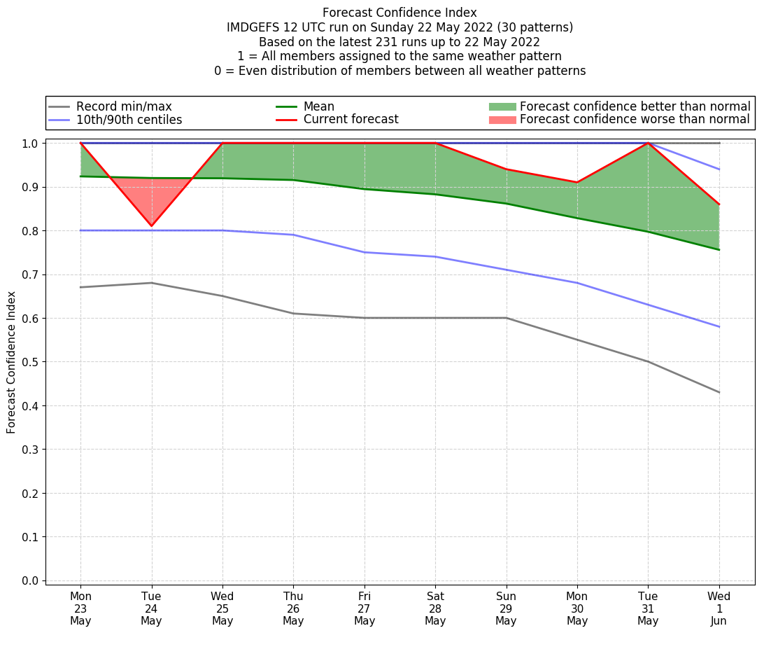 | Latest model run (22/12 UTC) | 100% | 67% | 100% | 100% | 100% | 100% | 95% | 90% | 100% | 81% |