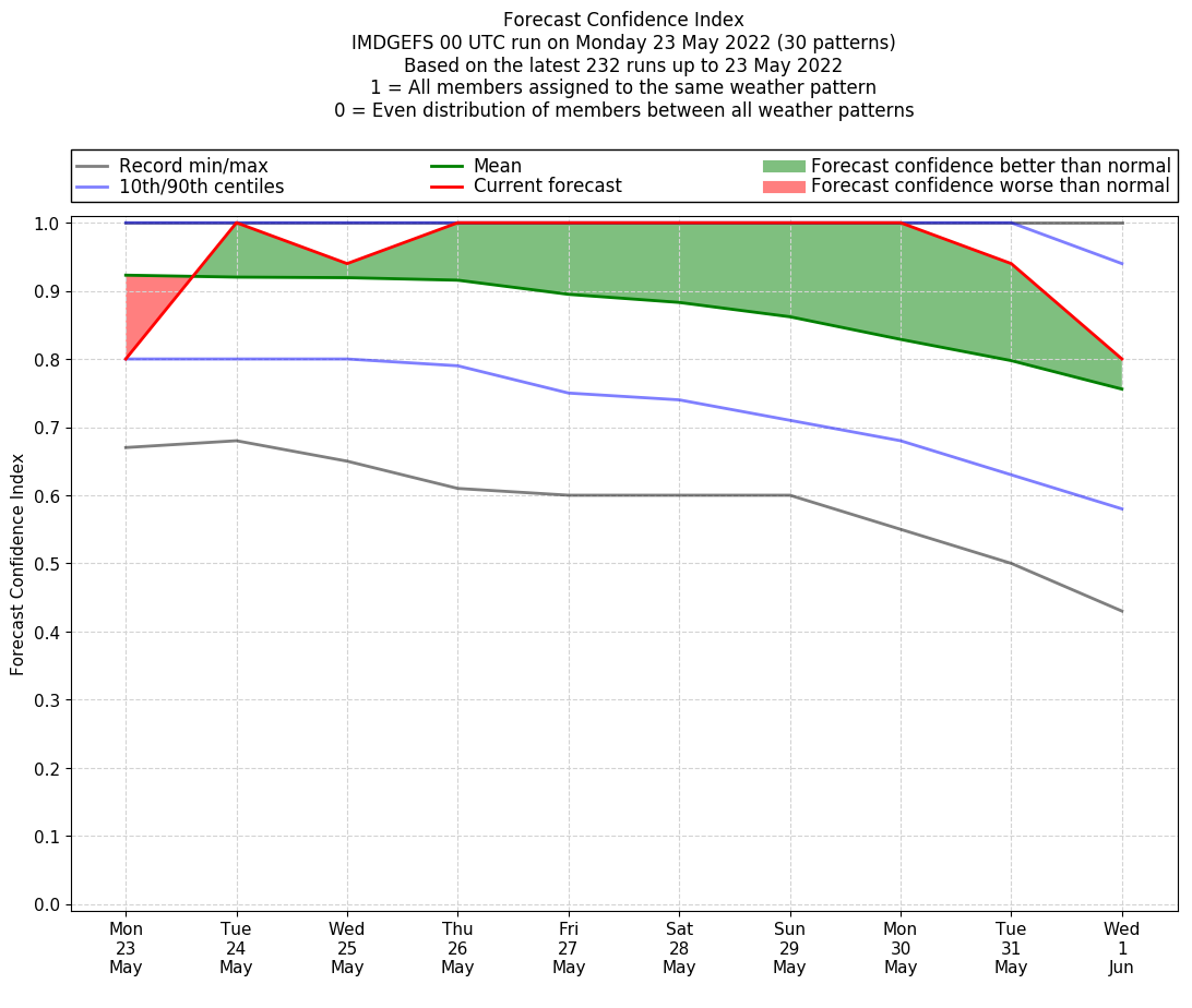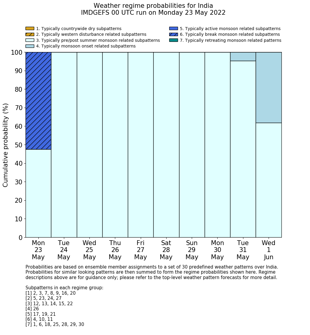 | Weather patterns typically associated with pre-monsoon tendencies over India are most likely Weather patterns 12, 13, 14, 15 and 22 (pre-monsoon) | |