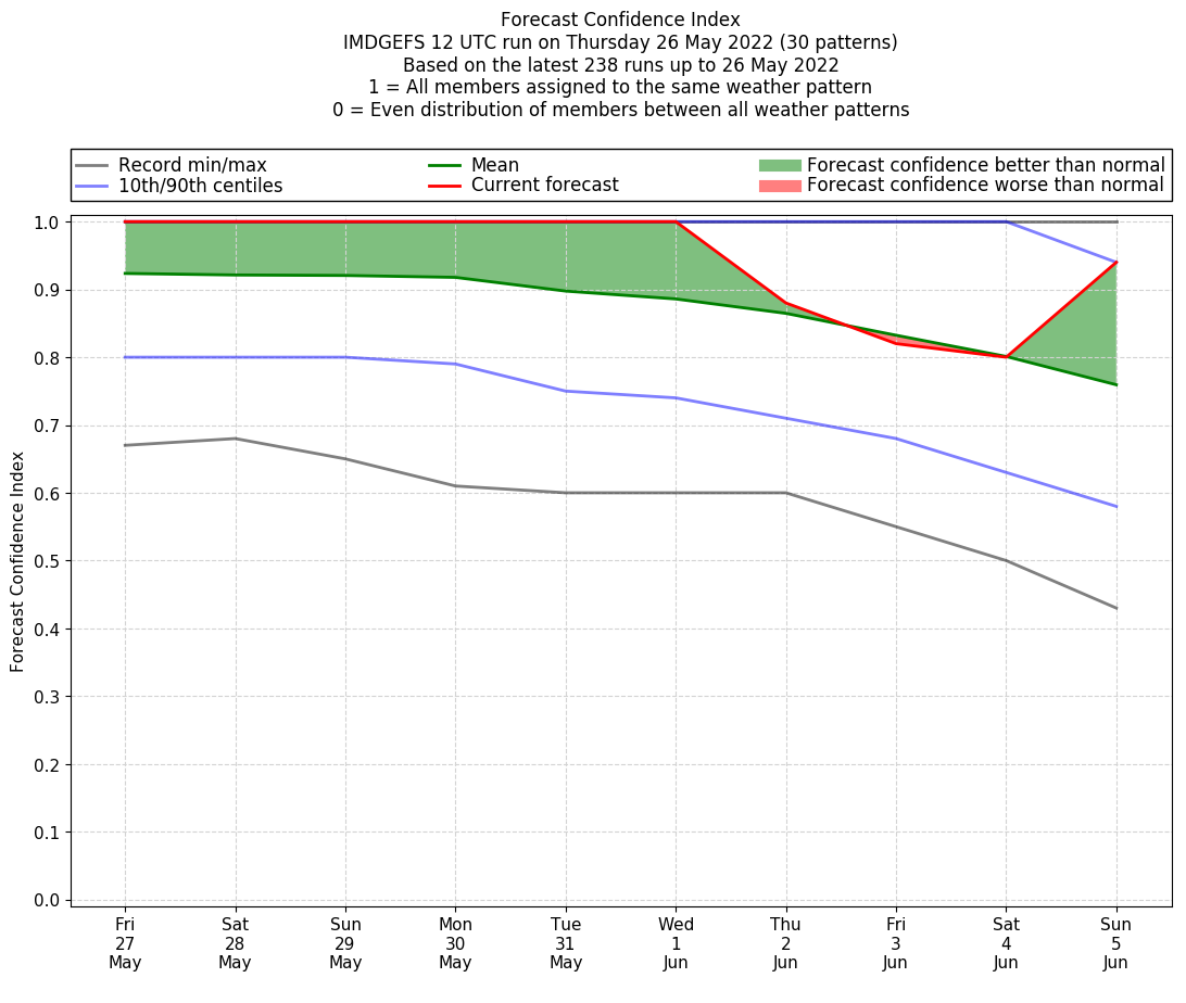 | Latest model run (26/12 UTC) | 100% | 100% | 100% | 100% | 100% | 100% | 86% | 71% | 57% | 95% |