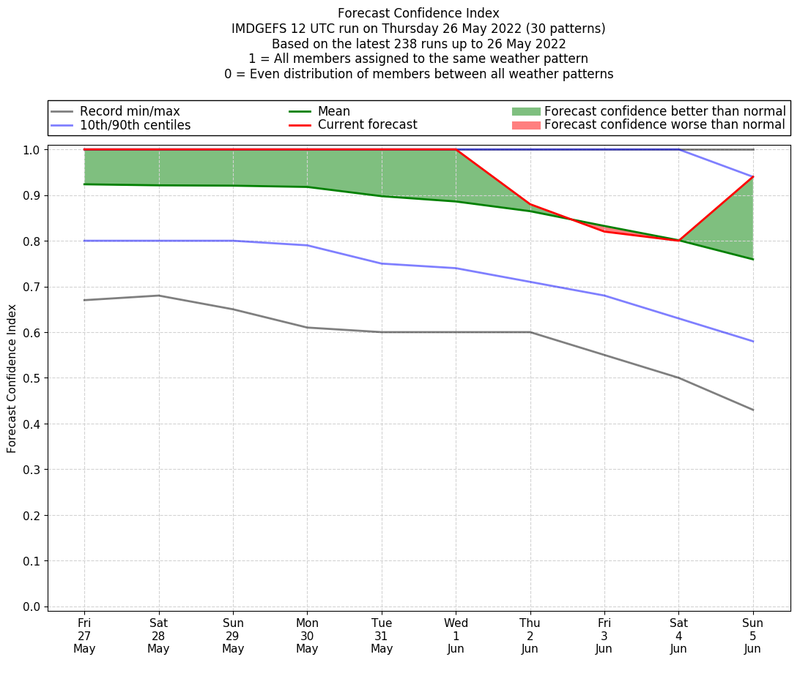 | Weather patterns typically associated with pre-monsoon tendencies over India are most likely Weather patterns 12, 13, 14, 15 and 22 (pre-monsoon) | |