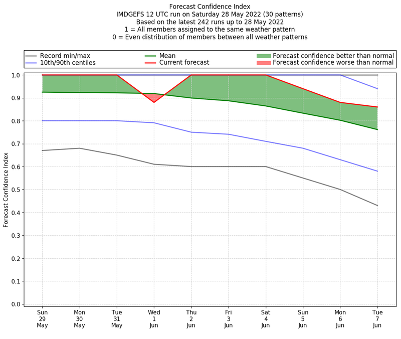 | Weather patterns typically associated with pre-monsoon tendencies over India are most likely Weather patterns 12, 13, 14, 15 and 22 (pre-monsoon) | |
