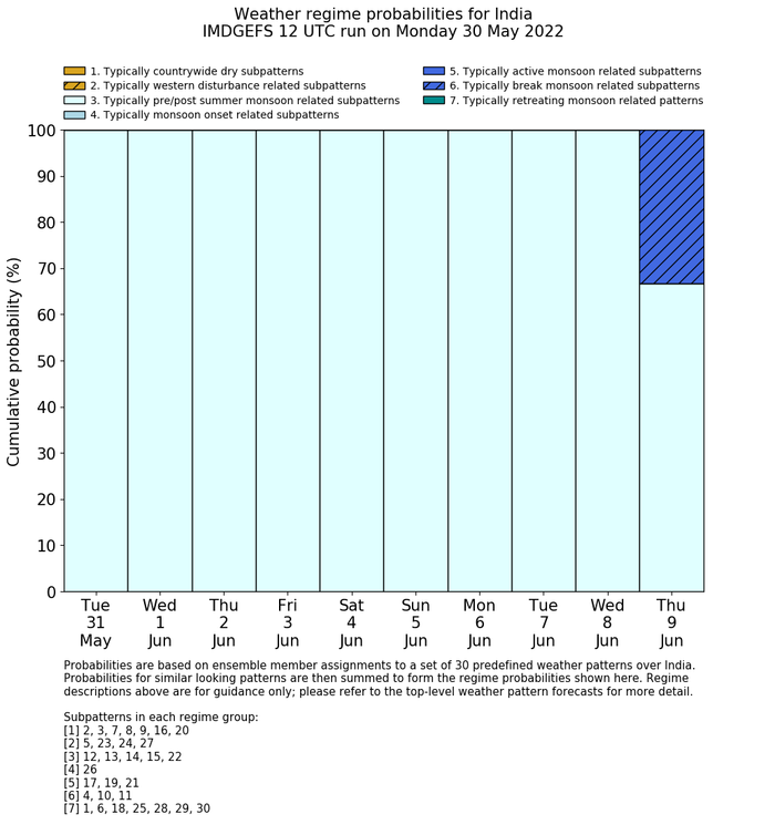 | Weather patterns typically associated with pre-monsoon tendencies over India are most likely Weather patterns 12, 13, 14, 15 and 22 (pre-monsoon) | |