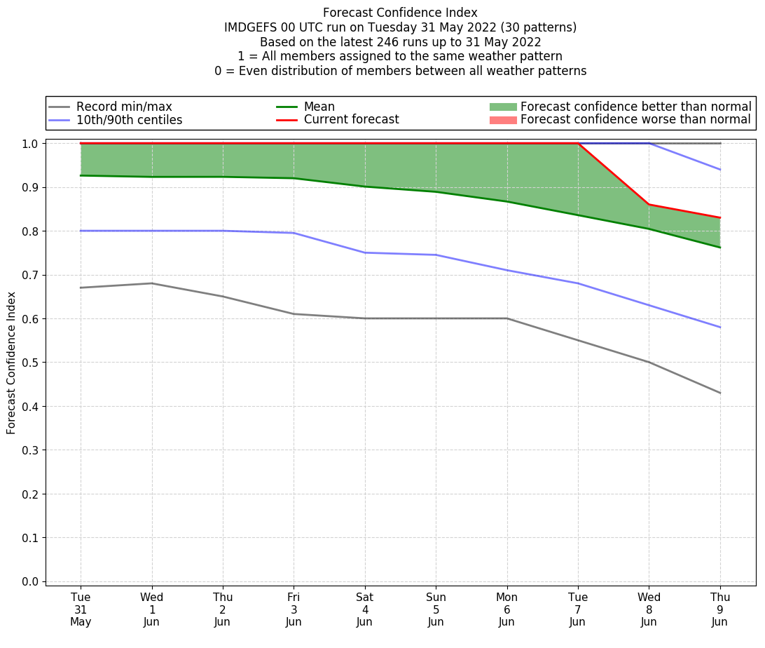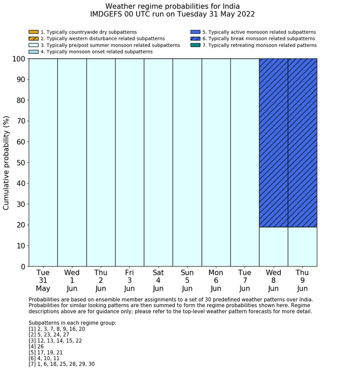 | Weather patterns typically associated with pre-monsoon tendencies over India are most likely Weather patterns 12, 13, 14, 15 and 22 (pre-monsoon) | |