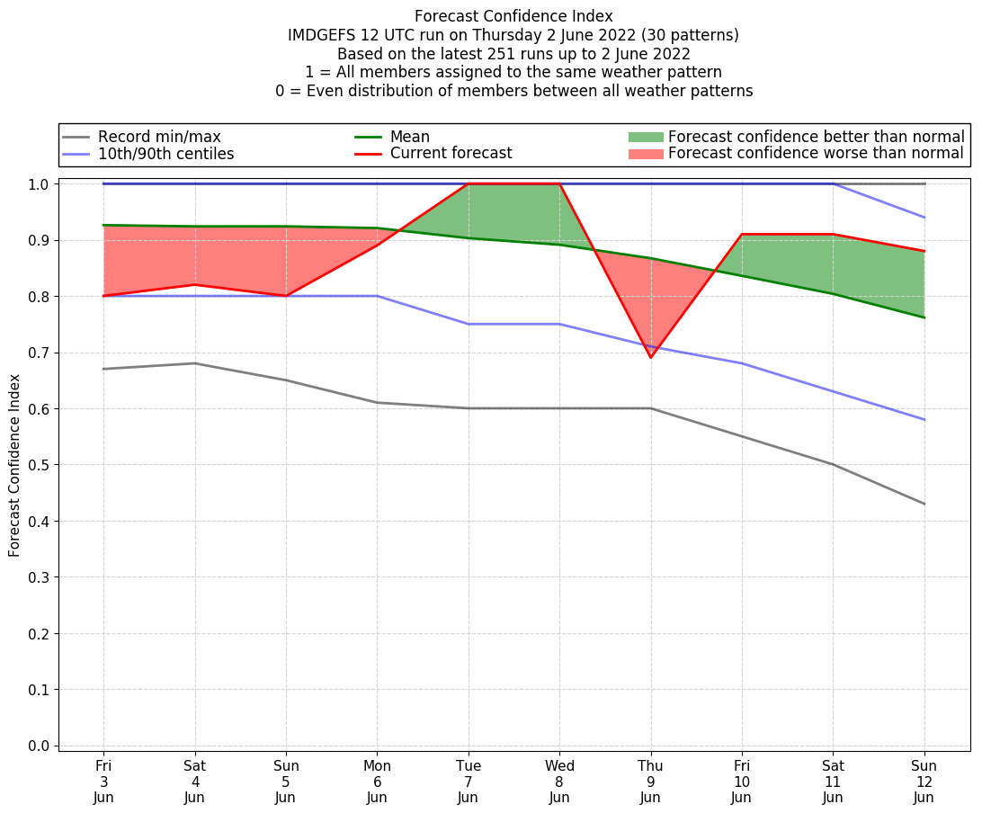 | Weather patterns typically associated with break monsoon tendencies over India are most likely Weather patterns 4, 10 and 11 (break) | |