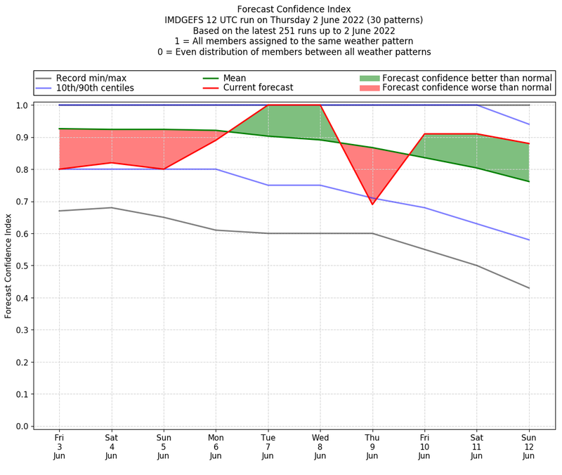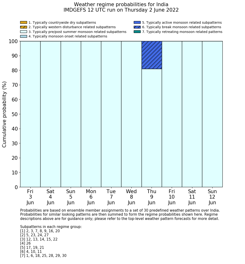| Weather patterns typically associated with pre-monsoon tendencies over India are most likely Weather patterns 12, 13, 14, 15 and 22 (pre-monsoon) | |