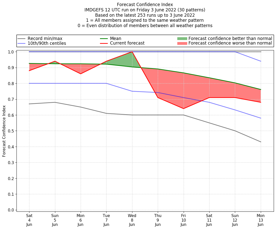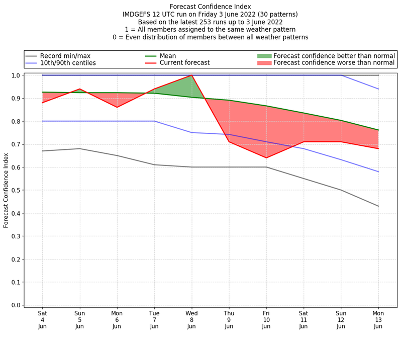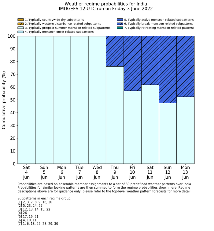 | Weather patterns typically associated with pre-monsoon tendencies over India are most likely Weather patterns 12, 13, 14, 15 and 22 (pre-monsoon) | |