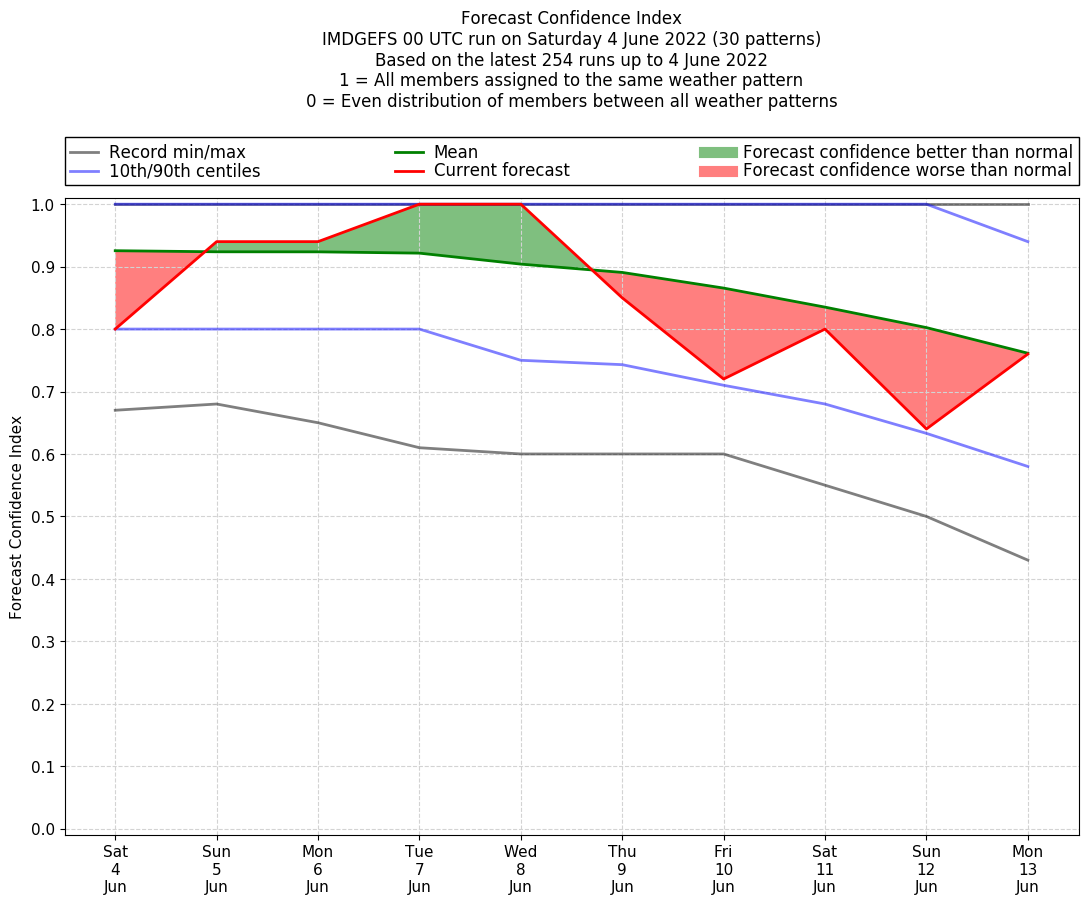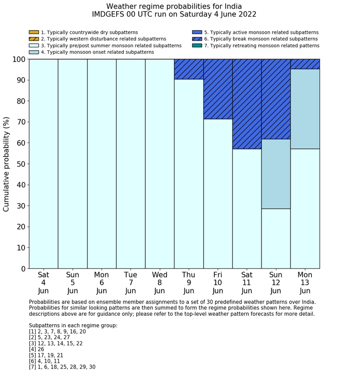 | Weather patterns typically associated with pre-monsoon tendencies over India are most likely Weather patterns 12, 13, 14, 15 and 22 (pre-monsoon) | |