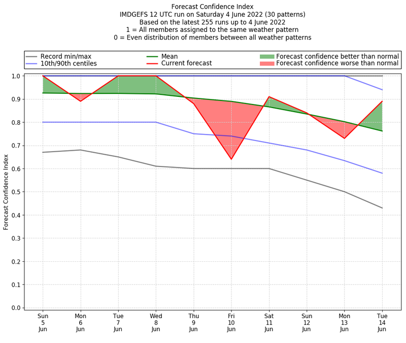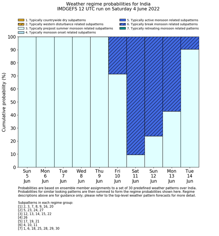 | Weather patterns typically associated with pre-monsoon tendencies over India are most likely Weather patterns 12, 13, 14, 15 and 22 (pre-monsoon) | |