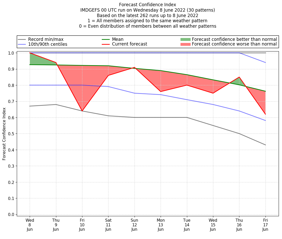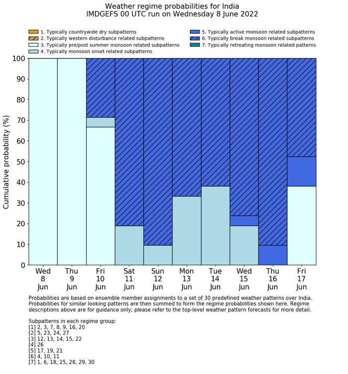 | Weather patterns typically associated with pre-monsoon tendencies over India are most likely Weather patterns 12, 13, 14, 15 and 22 (pre-monsoon) | |