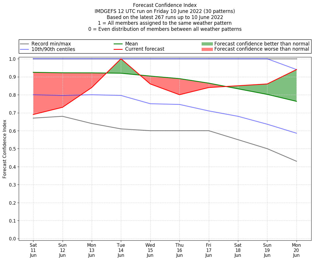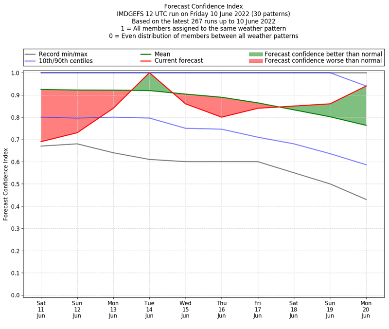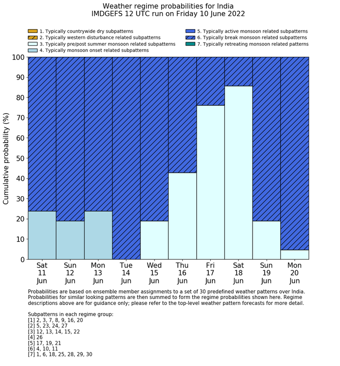 | Weather patterns typically associated with pre-monsoon tendencies over India are most likely Weather patterns 12, 13, 14, 15 and 22 (pre-monsoon) | |