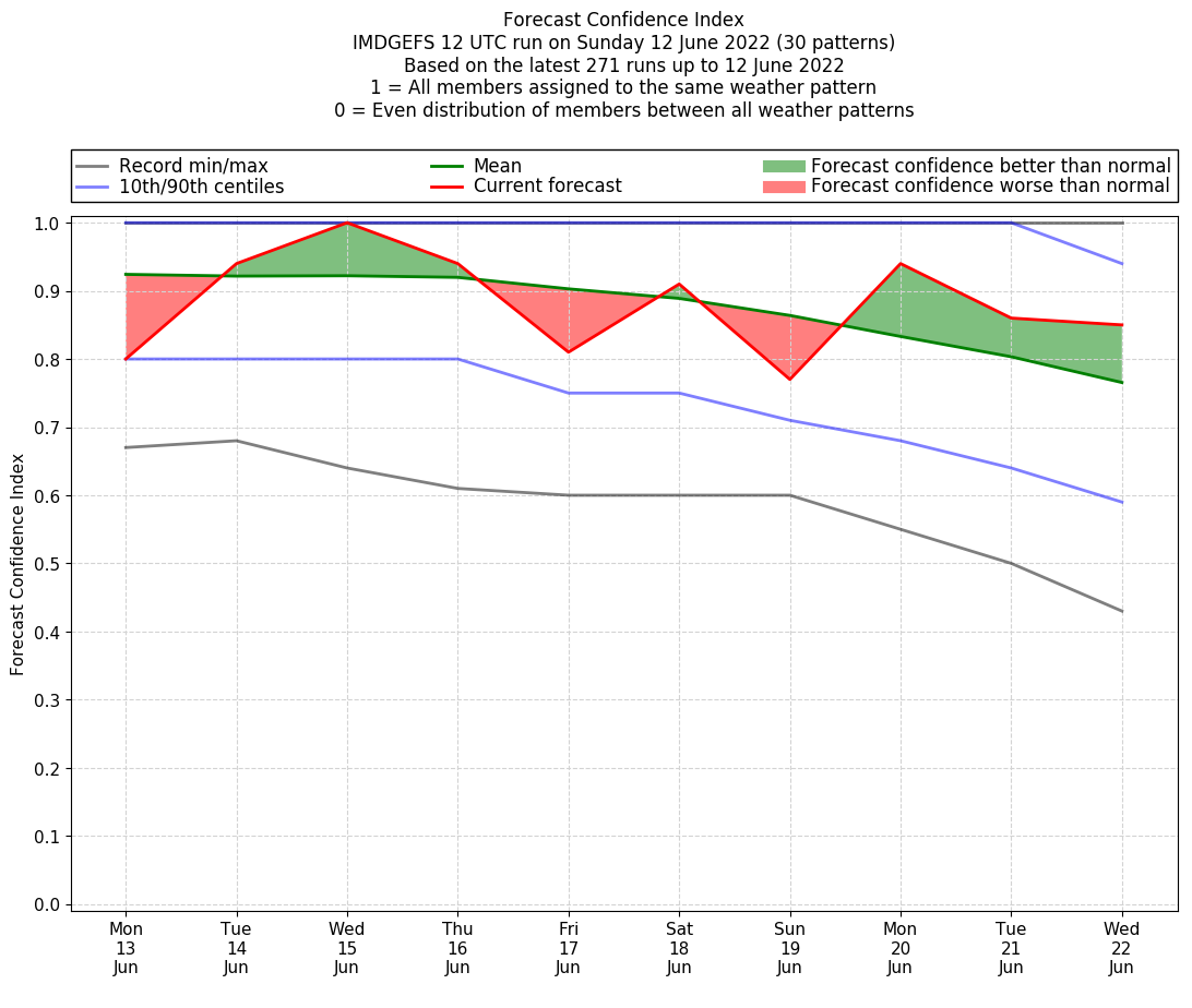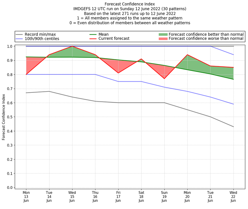 | Weather patterns typically associated with pre-monsoon tendencies over India are most likely Weather patterns 12, 13, 14, 15 and 22 (pre-monsoon) | |