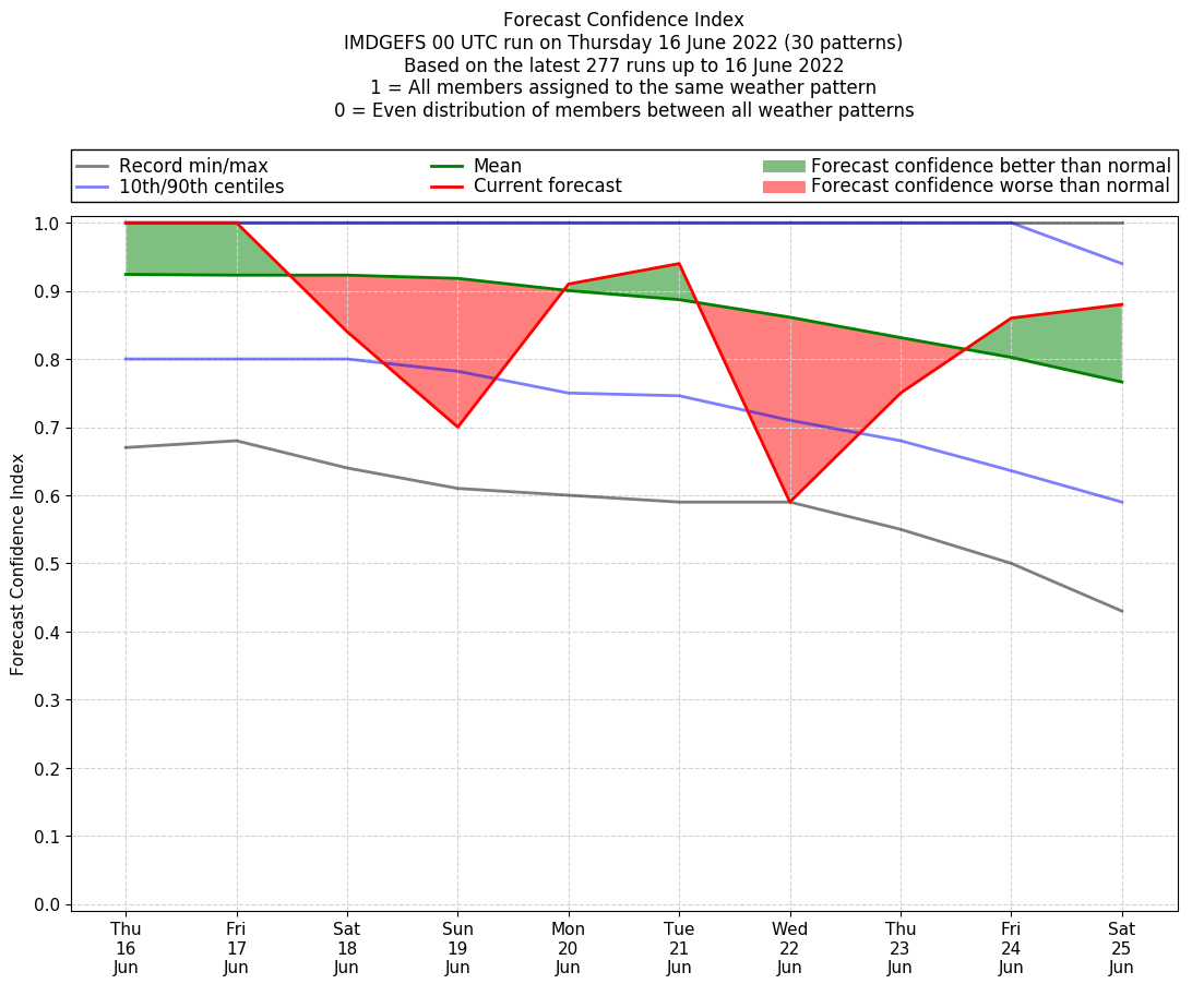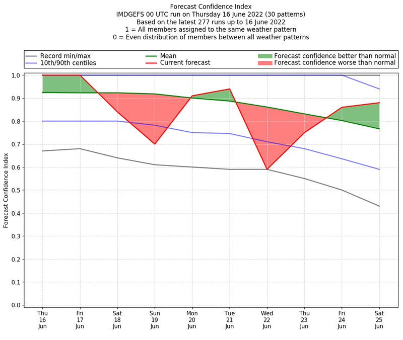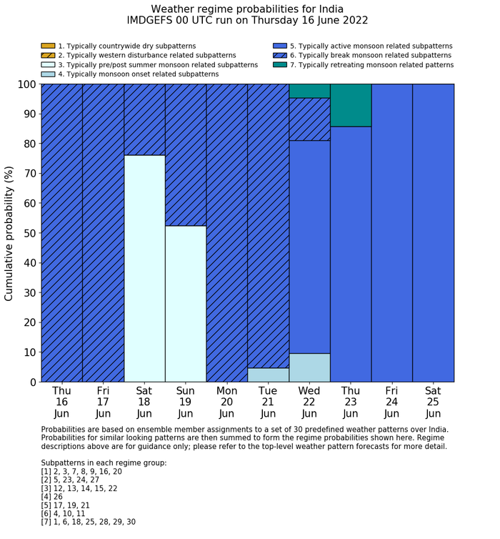 | Weather patterns typically associated with pre-monsoon tendencies over India are most likely Weather patterns 12, 13, 14, 15 and 22 (pre-monsoon) | |