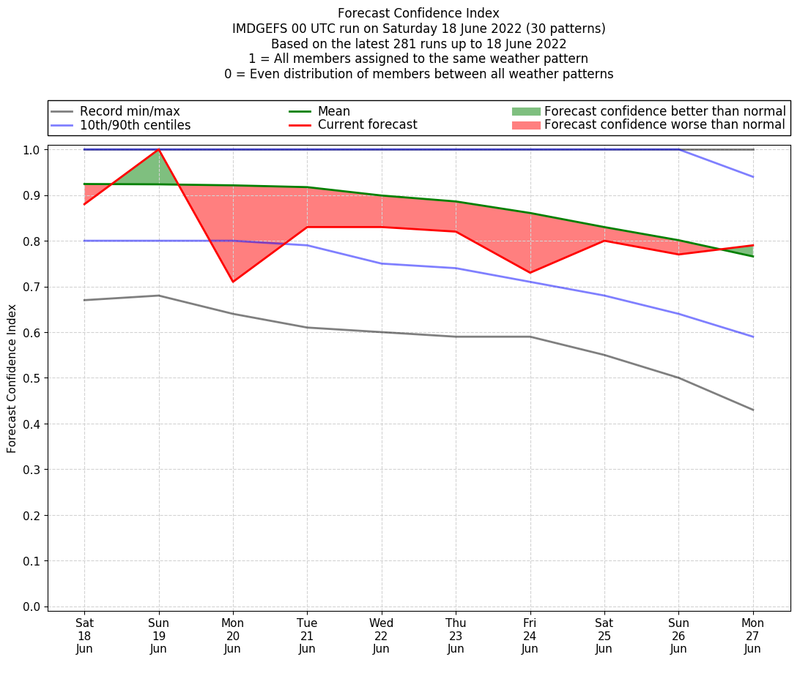 | Weather patterns typically associated with pre-monsoon tendencies over India are most likely Weather patterns 12, 13, 14, 15 and 22 (pre-monsoon) | |